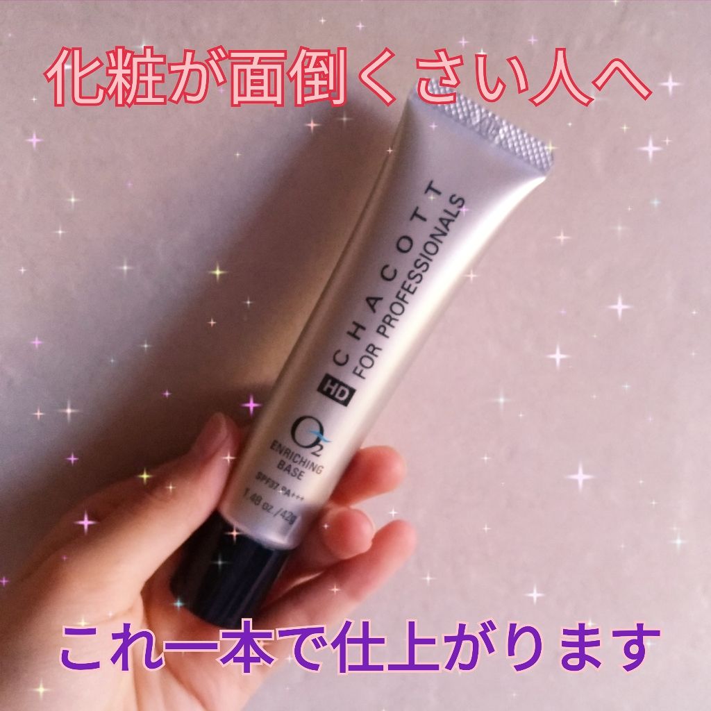 ♡CHACOTT♡プロフェッショナルズエンリッチングO2ベースハイビジョン対応ということで崩れが少ないため、夏に大活躍してくれました👏✨値段も安く、コスパも良いです!!カバー力もあるので、面倒なときはベース+コンシーラー+フィニッシングパウダ...