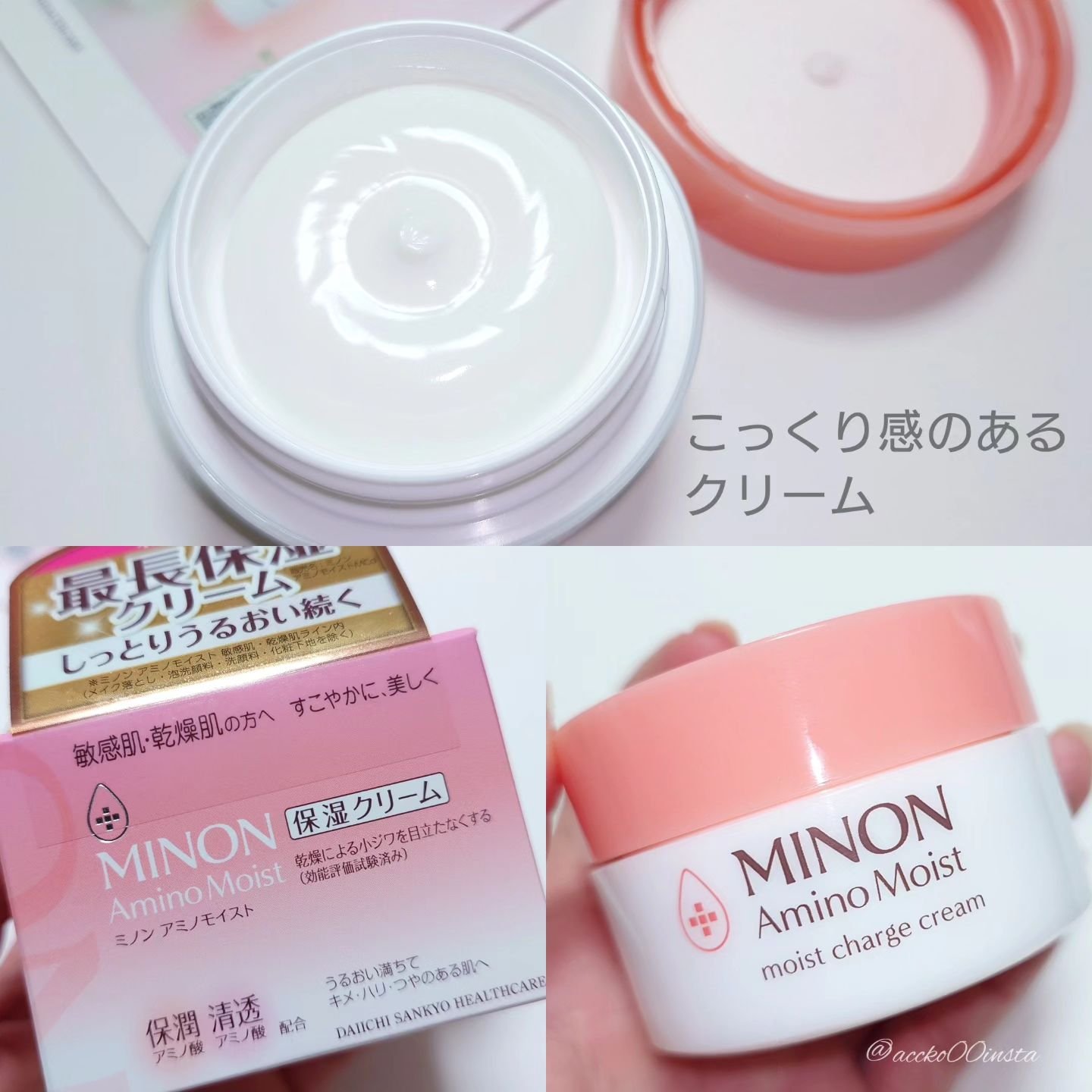 ミノン アミノモイストは敏感肌向けシリーズ。乾燥肌、混合肌、エイジングケアと3つのラインがあります。 全ライン共通で、9種の保潤アミノ酸配合・バリン・トレオニン・セリン・ロイシン・プロリン・ヒスチジン・グリシン・アラニン・アルギニン こっくりではなく軽めの質感のクリームで、馴染ませるとしっとり🫧