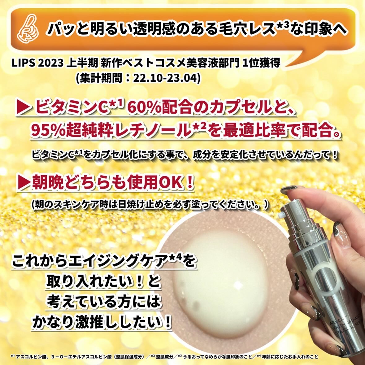 primeraユースラディアンスビタチノールセラム15g1本入り¥3,300ビタチノールセラムメガショットゲルマスク34g¥700ビタミンC✕レチノールで毛穴レス*1な明るい肌印象へ🪄︎︎毎日負担なく使える低刺激*2なデイリーセラムとセラム1...