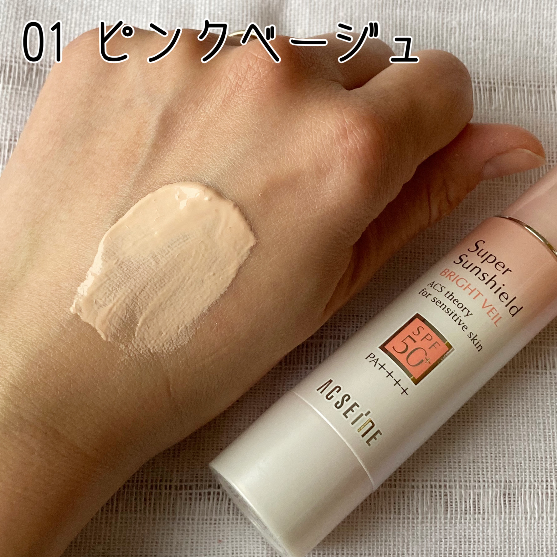 [敏感肌にも安心なUVベース✨]ACSEINEスーパーサンシールドブライトヴェール02クリームベージュSPF50+・PA++++でしっかり紫外線&近赤外線をカットしつつ、スキンケアしたみたいにしっとり感が続く優秀UV下地✨✔トーンアップしつつ...