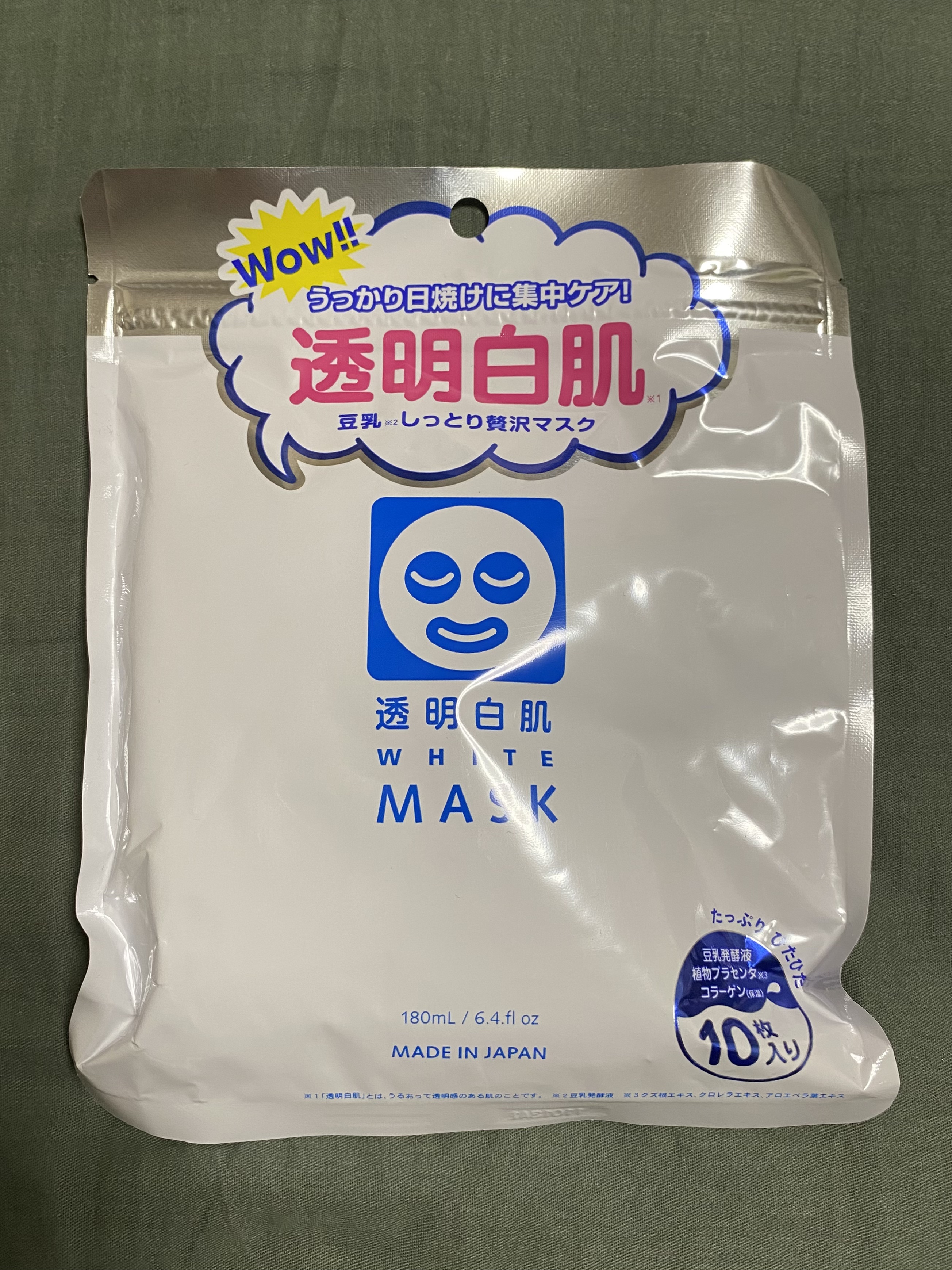 - <ホワイトマスクN> 水、グリセリン、BG、エタノール、ヒアルロン酸Na、加水分解コラーゲン、豆乳発酵液、クズ根エキス、クロレラエキス、アロエベラ葉エキス、ユキノシタエキス、ボタンエキス、ダイズ種子エキス、クエン酸、クエン酸Na、キサンタンガム、(スチレン/VP)コポリマー、ポリソルベート80、メチルパラベン、フェノキシエタノール