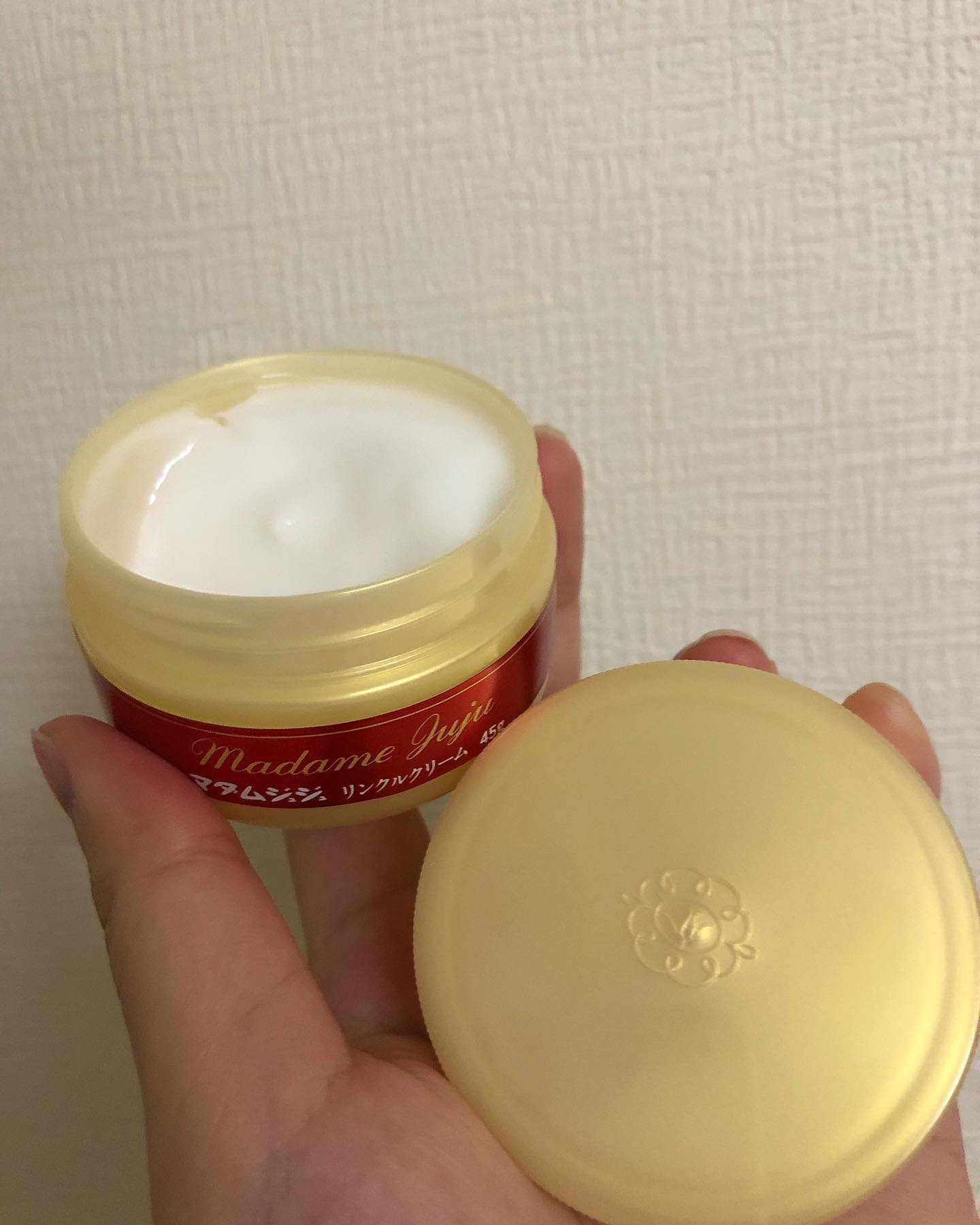 ほうれい線がとても気になるため使用しました😭 コロンとした手に収まる可愛い容器♡ 昔からあるスキンケアって、 香りがきついのかな?と思っていたのですが こちらはそんなことはなく使用しやすいです、 ベタつかない瑞々しいテクスチャーも気に入りました!