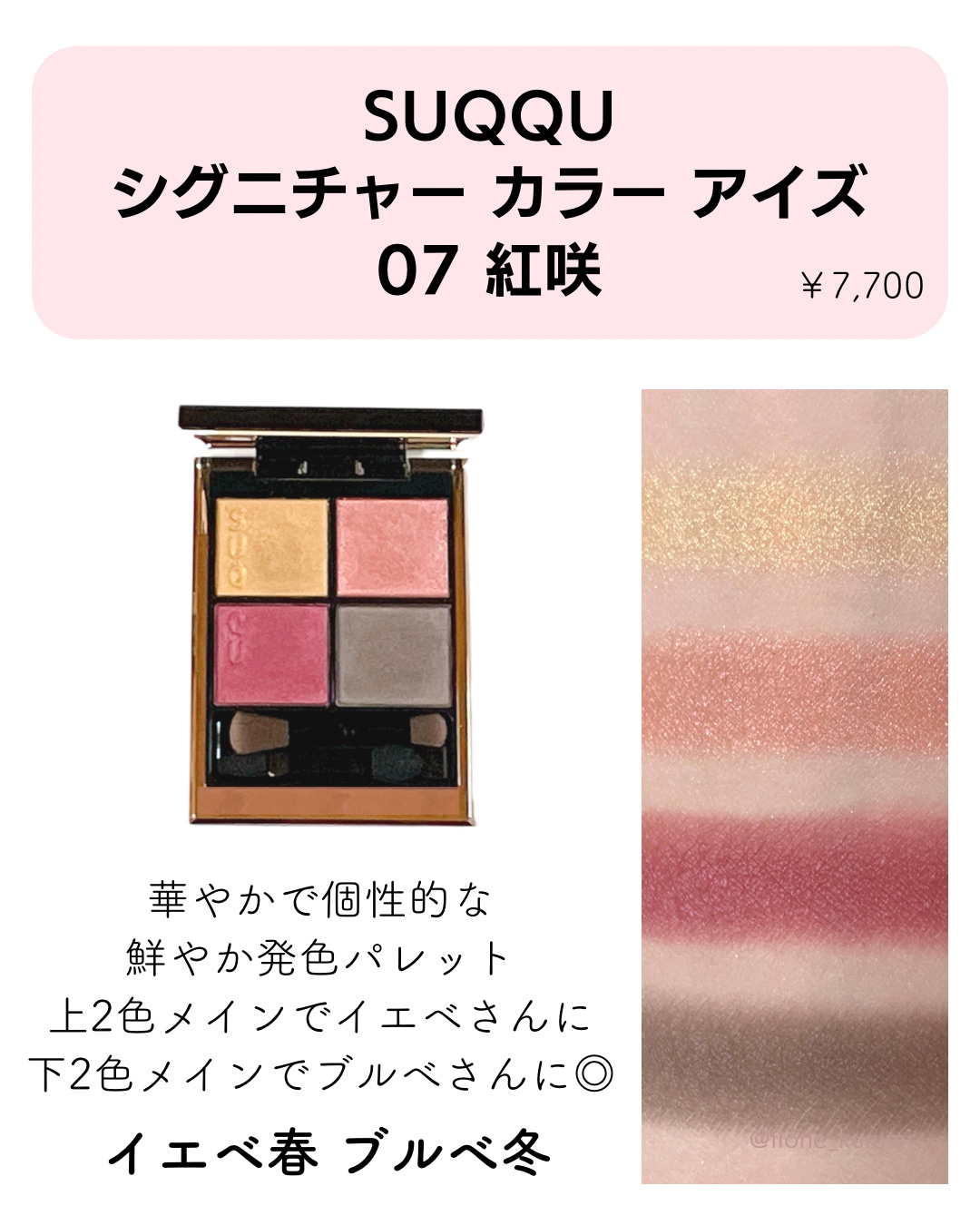 SUQQUシグニチャーカラーアイズ04純撫子今回は大好きな純撫子のご紹介をしたくて投稿させて頂きました!SUQQU公式オンラインショップの写真だと少しスプリングとサマー寄りのピンクっぽく見えるんですが実際の色はイエベさんにとってもおすすめのあ...