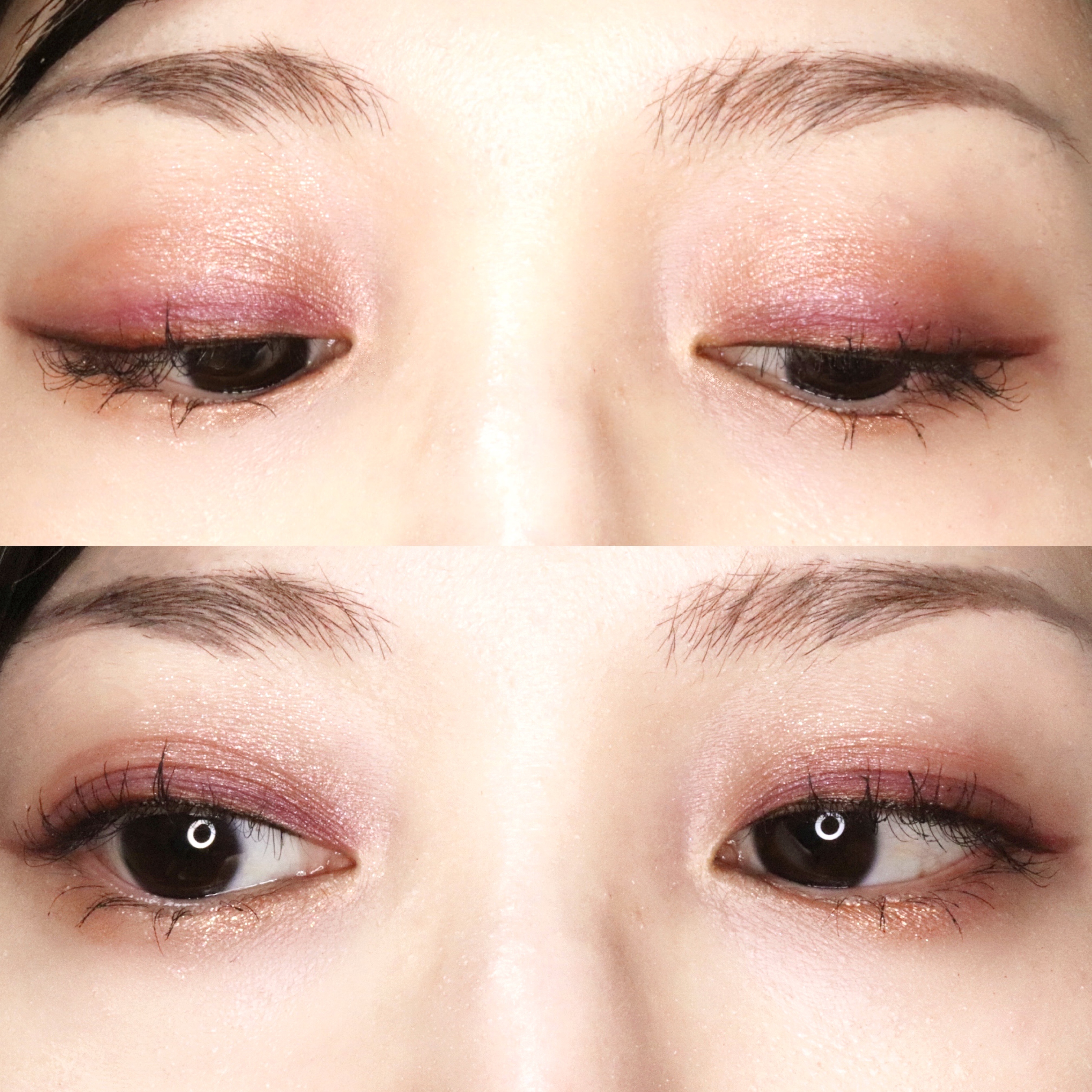 M110は優しいくすみピンクですっごい瞼になじみます。 062はくすみピンクブラウンで自然と彫りが深く見える目元に。 全体的に柔らかい発色で、急いでたり適当に塗ってもグラデーションが出来て、失敗しずらいと思います👌