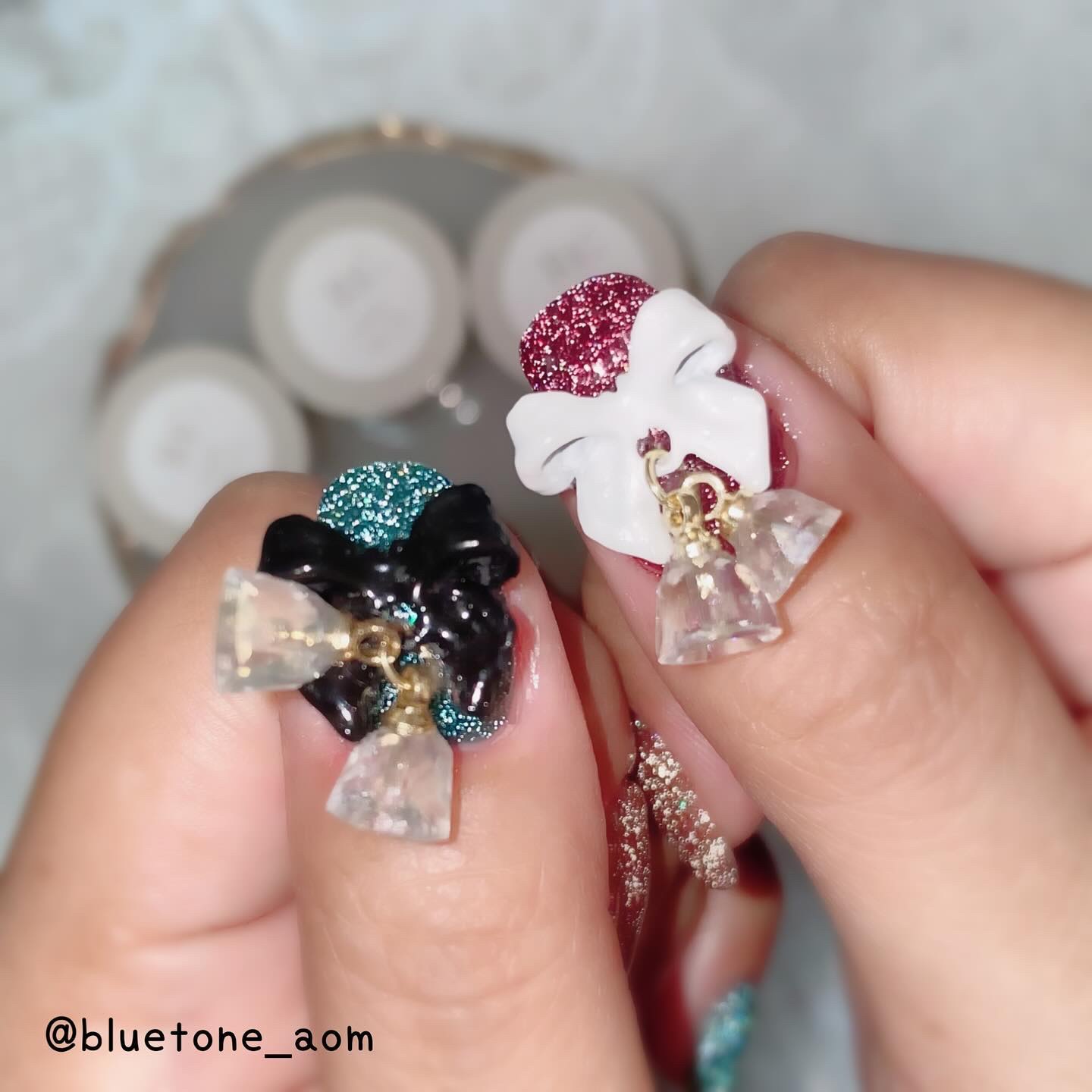 ドットで簡単リース ・ベースはミルキーホワイト(2度塗り) ・ピュアグリーンとスカーレットを紙パレットに少しだしてドットペン等でリースを書く マグネットでキラキラリース ・ベースはマグネット(ミルクブラウン) 2度塗りして光を中心へ 簡単リース(バランスが苦手な人向け) シールにあわせるので爪のサイズにあったシールを使うのがおすすめ