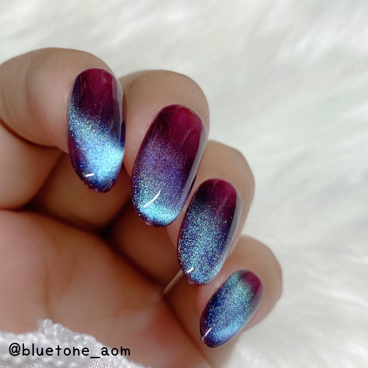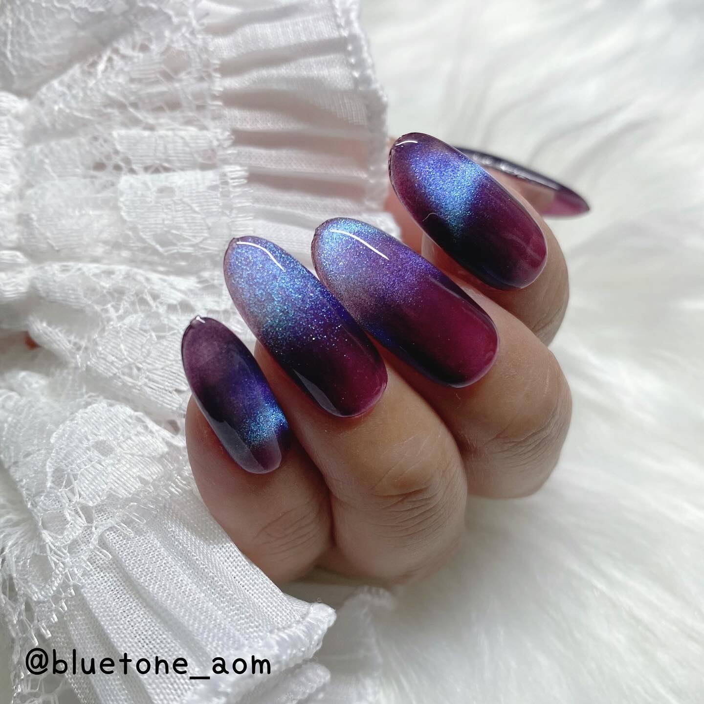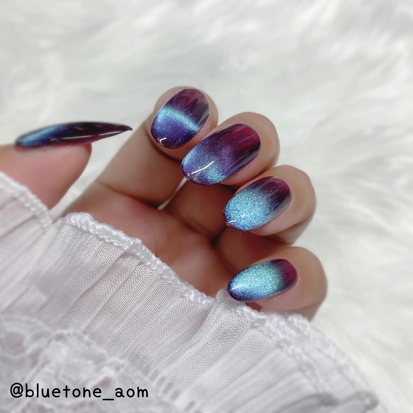 ラメがしっかりしてるし クリアカラーが入ってるから オーロラパウダー無しでも 充分キラキラしました! 反射強めのフィルムなので 実物はもっと うるうるとキラキラが強いです! ビー玉みたい🥺 ネイルシール長持ちさせたいけど ちょっと飽きてきたな〜って時とかに 全然違った印象になるのでオススメです! Seriaのベースジェル 本当にうるうるネイルしやすいので オススメしたい🙆♀️