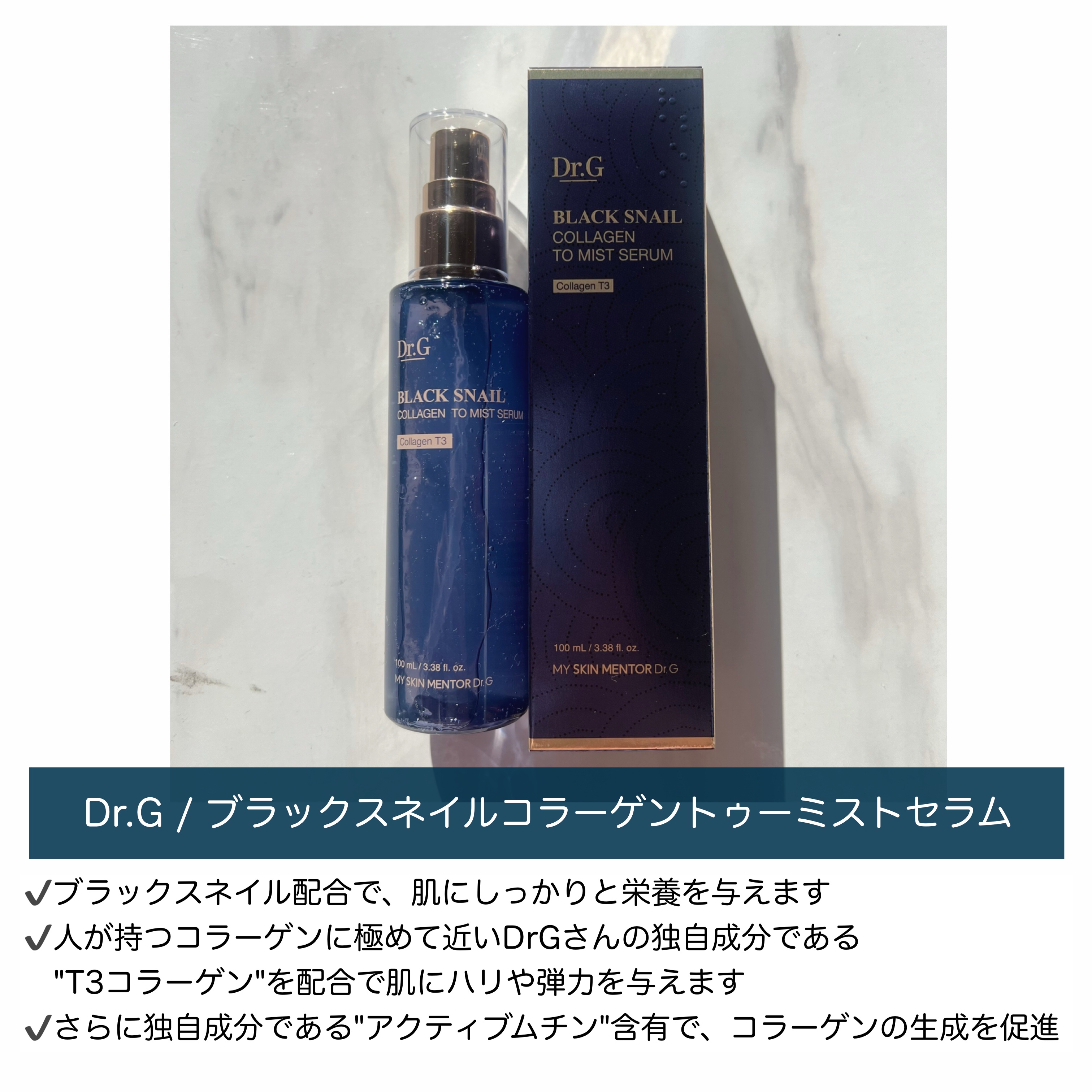 日本での発売後、1週間以内に1,000個が売り切れになるほど、今、一番注目されているミストセラム👀✨ 潤いとはこれか! と実感できるプレミアムミストセラム🫧 ブラックスネイル配合! T3コラーゲンという、人が持つコラーゲンに極めて近いドクタージーの独自成分で肌にハリや弾力を与え、コラーゲンの生成を促進するドクタージーの独自成分アクティブムチンが含まれた、とても贅沢なミストセラム✦*