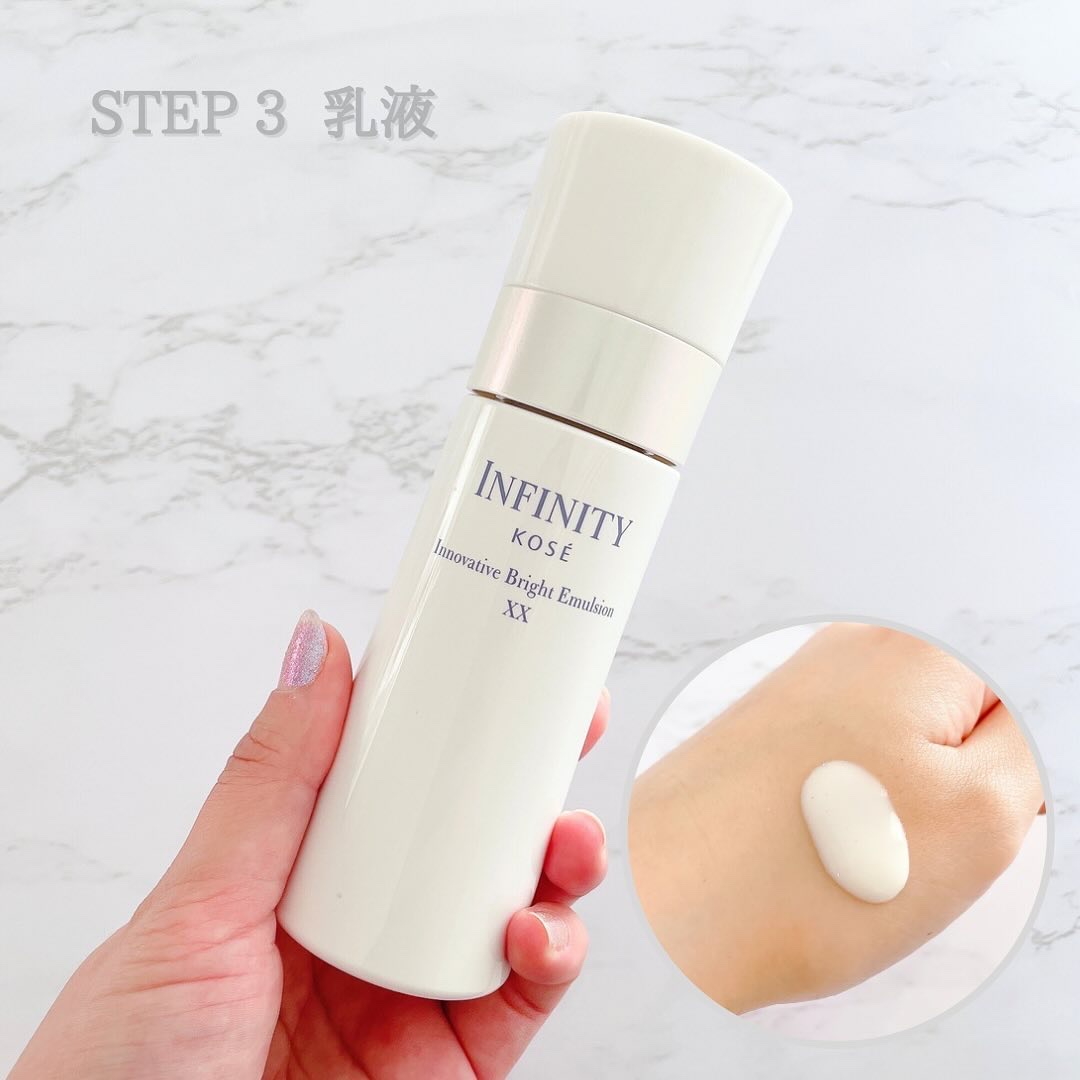 弾力ある、ふわとろテクスチャーの乳液インフィニティ🌹イノベイティブブライトエマルジョンXXまろやかな感触で、与えたうるおいと美容成分を密封。パールのようにふっくらと満たされた肌へみちびく薬用美白乳液。🟡美白とエイジングケア※1を同時に叶える先...