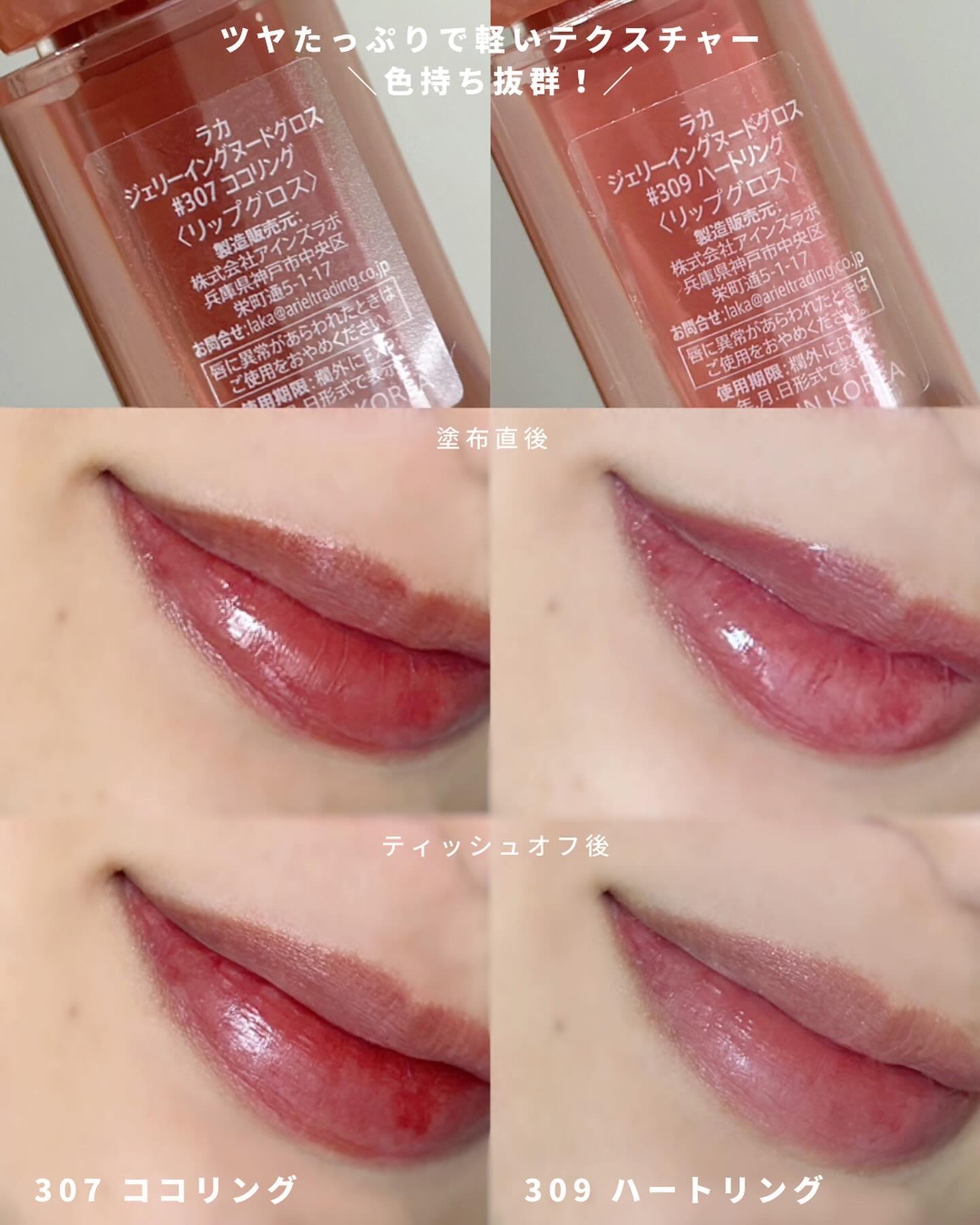 - <301 フィグリング> ジフェニルジメチコン、水、リンゴ酸ジイソステアリル、ビスジグリセリルポリアシルアジペート-2、オクチルドデカノール、水添ポリイソブテン、ダイマージリノール酸ダイマージリノレイルビス(ベヘニル/イ ソステアリル/フィトステリル)、セチルPEG/PPG-10/1ジメチコン、グリセリン、BG、イソステア リン酸ソルビタン(小麦由来)、ポリソルベート60(小麦由来)、ペンチレングリコール、(アクリル酸ヒドロキシエチル/アクリロイルジメチルタウ リンNa)コポリマー、セテアレス- 20、スクワラン、フェノキシエタノール、ステビオシド、香料、エチルヘキシルグリセリン、水酸化Al、ポリアクリル酸アンモニウム、[+/-]酸化チ タン、黄4、赤227、黄5、青1 <302 ぶどうリング> ジフェニルジメチコン、水、リンゴ酸ジイソステアリル、ビスジグリセリルポリアシルアジペート-2、オクチルドデカノール、水添ポリイソブテン、ダイマージリノール酸ダイマージリノレイルビス(ベヘニル/イ ソステアリル/フィトステリル)、セチルPEG/PPG-10/1ジメチコン、グリセリン、BG、イソステア リン酸ソルビタン(小麦由来)、ポリソルベート60(小麦由来)、ペンチレングリコール、(アクリル酸ヒドロキシエチル/アクリロイルジメチルタウ リンNa)コポリマー、セテアレス- 20、スクワラン、フェノキシエタノール、ステビオシド、香料、エチルヘキシルグリセリン、水酸化Al、ポリアクリル酸アンモニウム、[+/-]酸化チ タン、黄4、赤227、黄5、青1 <303 ももリング> ジフェニルジメチコン、水、リンゴ酸ジイソステアリル、ビスジグリセリルポリアシルアジペート-2、オクチルドデカノール、水添ポリイソブテン、ダイマージリノール酸ダイマージリノレイルビス(ベヘニル/イ ソステアリル/フィトステリル)、セチルPEG/PPG-10/1ジメチコン、グリセリン、BG、イソステア リン酸ソルビタン(小麦由来)、ポリソルベート60(小麦由来)、ペンチレングリコール、(アクリル酸ヒドロキシエチル/アクリロイルジメチルタウ リンNa)コポリマー、セテアレス- 20、スクワラン、フェノキシエタノール、ステビオシド、香料、エチルヘキシルグリセリン、水酸化Al、ポリアクリル酸アンモニウム、[+/-]酸化チ タン、黄4、赤227、黄5、青1 <304 ジンジャーリング> ジフェニルジメチコン、水、リンゴ酸ジイソステアリル、ビスジグリセリルポリアシルアジペート-2、オクチルドデカノール、水添ポリイソブテン、ダイマージリノール酸ダイマージリノレイルビス(ベヘニル/イ ソステアリル/フィトステリル)、セチルPEG/PPG-10/1ジメチコン、グリセリン、BG、イソステア リン酸ソルビタン(小麦由来)、ポリソルベート60(小麦由来)、ペンチレングリコール、(アクリル酸ヒドロキシエチル/アクリロイルジメチルタウ リンNa)コポリマー、セテアレス- 20、スクワラン、フェノキシエタノール、ステビオシド、香料、エチルヘキシルグリセリン、水酸化Al、ポリアクリル酸アンモニウム、[+/-]酸化チ タン、黄4、赤227、黄5、青1 <305 みかんリング> ジフェニルジメチコン、水、リンゴ酸ジイソステアリル、ビスジグリセリルポリアシルアジペート-2、オクチルドデカノール、水添ポリイソブテン、ダイマージリノール酸ダイマージリノレイルビス(ベヘニル/イ ソステアリル/フィトステリル)、セチルPEG/PPG-10/1ジメチコン、グリセリン、BG、イソステア リン酸ソルビタン(小麦由来)、ポリソルベート60(小麦由来)、ペンチレングリコール、(アクリル酸ヒドロキシエチル/アクリロイルジメチルタウ リンNa)コポリマー、セテアレス- 20、スクワラン、フェノキシエタノール、ステビオシド、香料、エチルヘキシルグリセリン、水酸化Al、ポリアクリル酸アンモニウム、[+/-]酸化チ タン、黄4、赤227、黄5、青1 <306 エンジェルリング> ジフェニルジメチコン、水、リンゴ酸ジイソステアリル、ビスジグリセリルポリアシルアジペート-2、オクチルドデカノール、水添ポリイソブテン、ダイマージリノール酸ダイマージリノレイルビス(ベヘニル/イ ソステアリル/フィトステリル)、セチルPEG/PPG-10/1ジメチコン、グリセリン、BG、イソステア リン酸ソルビタン(小麦由来)、ポリソルベート60(小麦由来)、ペンチレングリコール、(アクリル酸ヒドロキシエチル/アクリロイルジメチルタウ リンNa)コポリマー、セテアレス- 20、スクワラン、フェノキシエタノール、ステビオシド、香料、エチルヘキシルグリセリン、水酸化Al、ポリアクリル酸アンモニウム、[+/-]酸化チ タン、黄4、赤227、黄5、青1 <307 ココリング> ジフェニルジメチコン、水、リンゴ酸ジイソステアリル、ビスジグリセリルポリアシルアジペート-2、オクチルドデカノール、水添ポリイソブテン、ダイマージリノール酸ダイマージリノレイルビス(ベヘニル/イソステアリル/フィトステリル)、グリセリン、セチルPEG/PPG-10/1ジメチコン、BG、イソステアリン酸ソルビタン(小麦由来)、ポリソルベート60(小麦由来)、ペンチレングリコール、(アクリル酸ヒドロキシエチル/アク