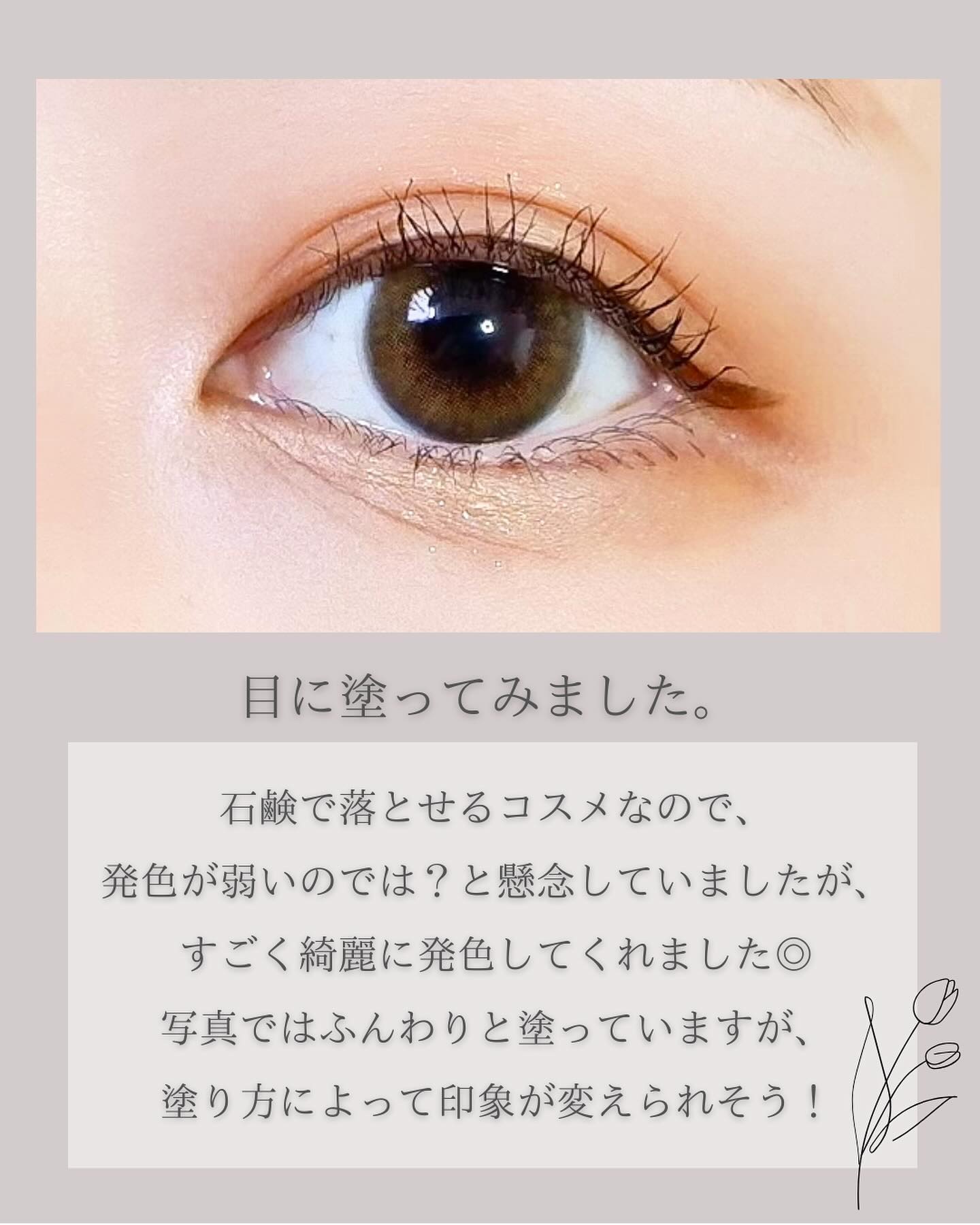 姉がアカリンフェスの先行販売でゲットしたそうで、 貸してもらったごまかしシャドウ🥰 アカリンの動画で見て気になっていたので嬉しい👏 バズってて買ってみたけど色が合わなかったシャドウや、 発色良すぎて濃くなりやすいシャドウにぴったり! ニュアンスチェンジっていう感じで、 すごく発色する感じでは無いのですが、 光が当たった時に質感や色味が綺麗に見えます✨ ラメの繊細なキラキラ感も可愛いし、 痒いところに手が届くアイテムで良いですね◎