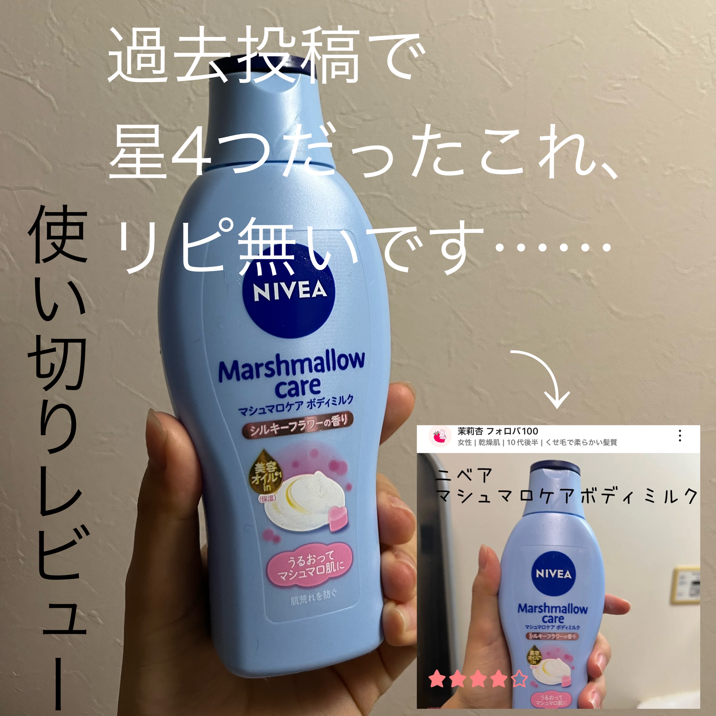 ニベア マシュマロケアボディミルク シルキーフラワーの香り 200ml💐軽やかに可憐なシルキーフラワーの香りスーッと伸びる塗りごごち!塗ってしばらくはぺたぺた感とオイル?のぬるっと感あるけど馴染むとしっとりなめらかな感じに!夜塗って朝起き...