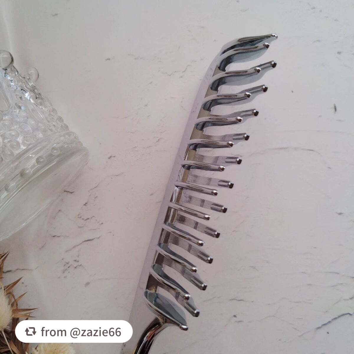 - 静電気からキューティクルを守ってまとまる髪に! 髪にたまったパチパチをクロムメッキが逃がします。 滑らかな表面のコームで髪通りするんっ。 隙間のある粗めコームがもつれをときほぐします。