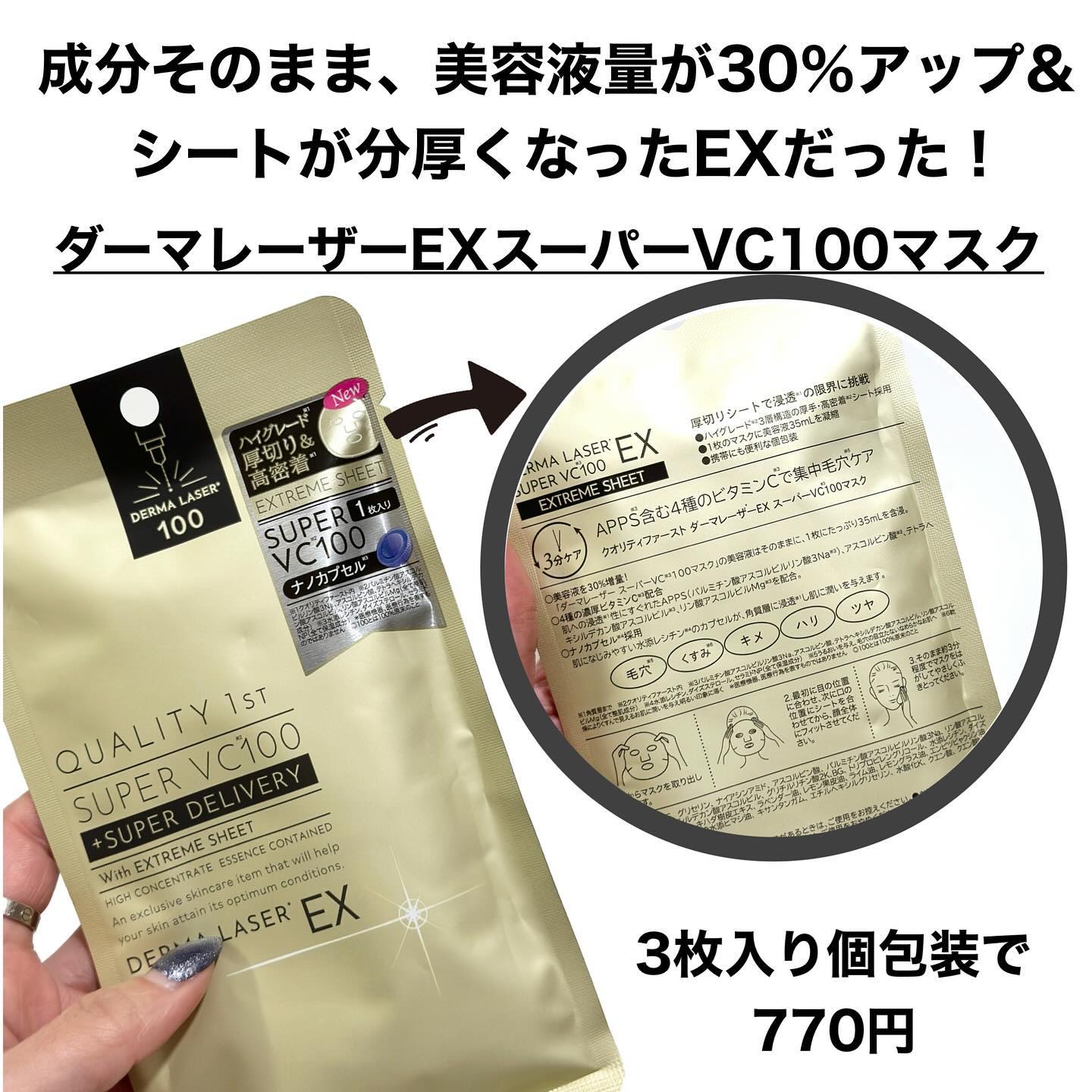 ã¯ãªãªãã£ãã¡ãŒã¹ãããŒãã¬ãŒã¶ãŒEXã¹ãŒããŒVC100ãã¹ã¯4çš®ã®ãã¿ãã³C*ã§éäžæ¯ç©Ž**ã±ã¢ð«§ã¹ãŒããŒVC100ãã¹ã¯ãšçŸå®¹æ¶²ã¯åãã ãã©1æã«35mlãå«ãã§ãŠ3å±€æ§é ã®åæã·ãŒããå¯çæãã£ãŠâéãæã®ãªããšã¯ã¹ããªãŒã ã·ãŒãã§åã¿...