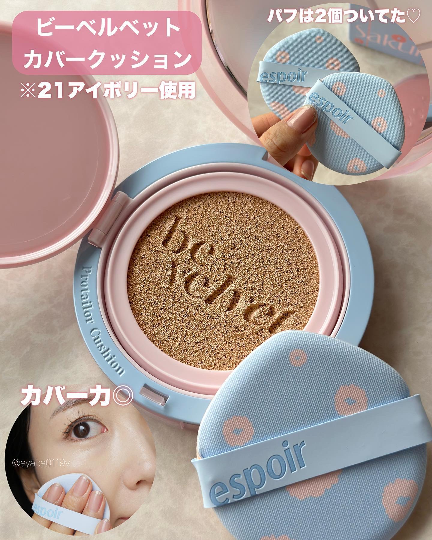 BEVELVETクッション×ウォータースプラッシュサンクリームセラマイド守って、魅せる。水光下地×ベルベットカバーで、完成度ちがう大人肌❗️もう10年位前からどちらも何度もリピしてる優秀アイテム👍✨espoir✨100時間持続!超密着カバーの...