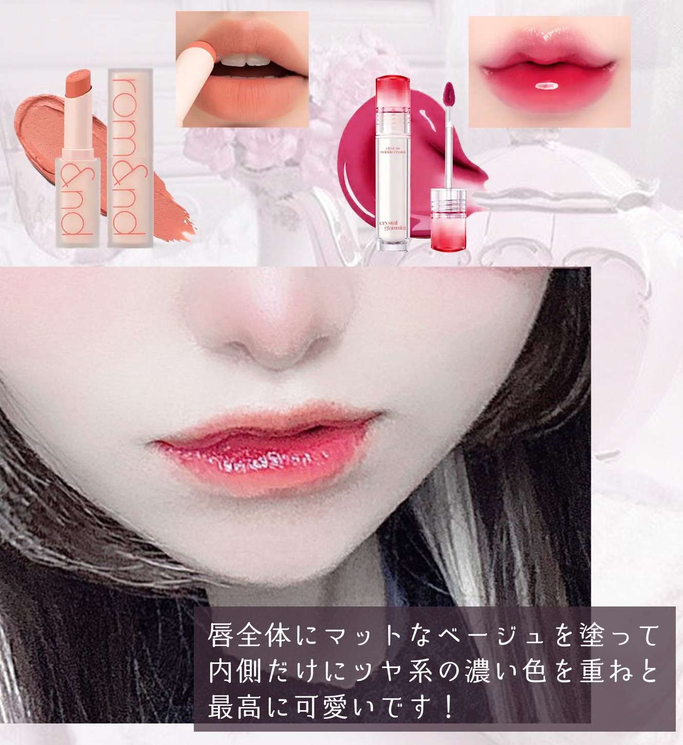 Twitterで5.6万いいね1.6万RTされたグラデーションリップの作り方です😊じゅんわりと可愛いリップが作れるのでぜひ挑戦してみてください!使っているマットリップは後日紹介します!ティントの方は過去の投稿を見て頂けると嬉しいです✨...