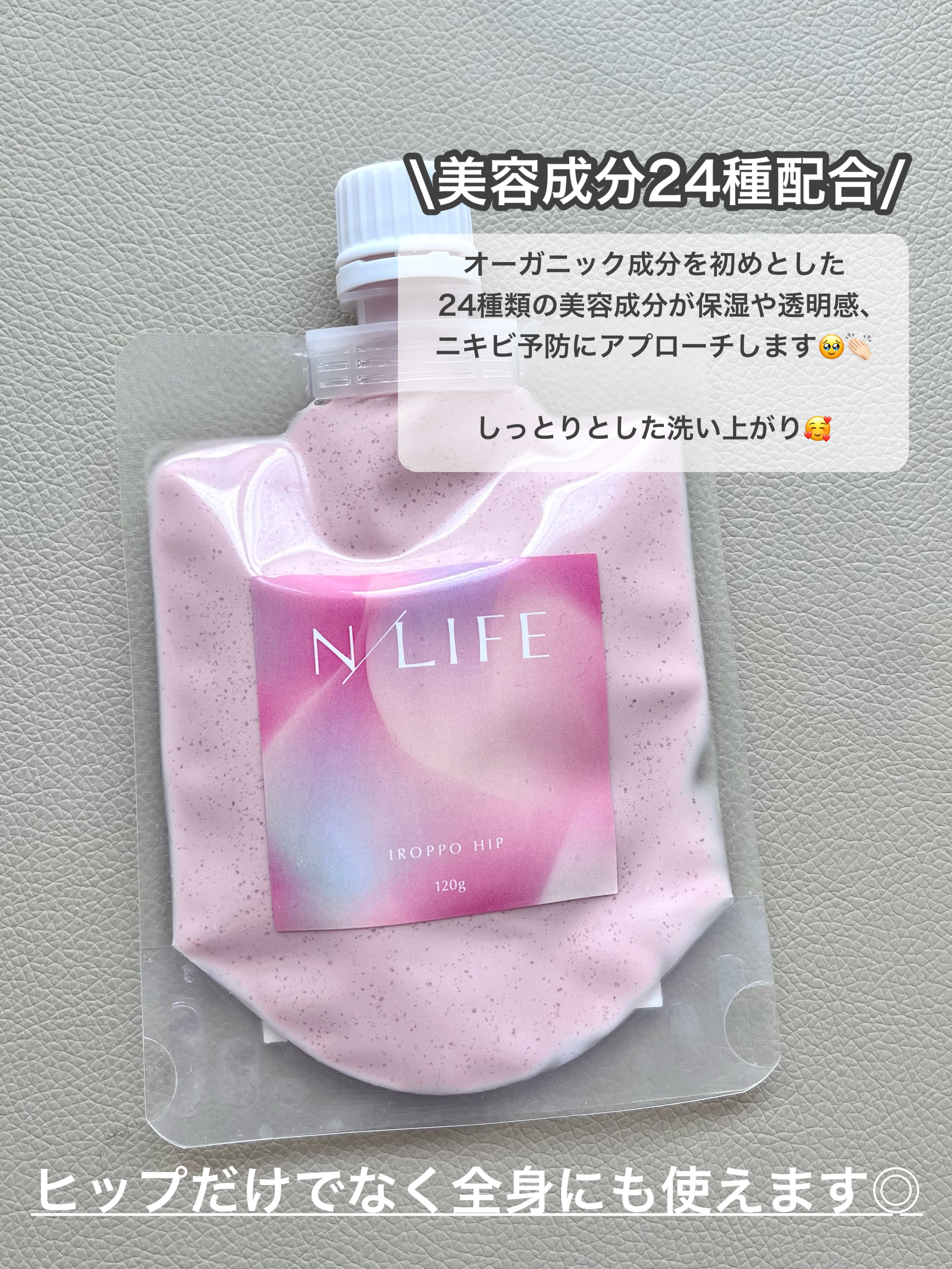 3種類のクレイ×24種類の美容成分配合!黒ずみ・ニキビ・ゴワつきをオフ!CICAエキスやバクチオール配合で、うっとりしっとり潤う美尻へ🍑 17種類の天然アロマをブレンド。甘く上品なフェミニンアロマの香りでバスタイムにも🛀 使い方は簡単!くるくるマッサージして洗い流すだけ!