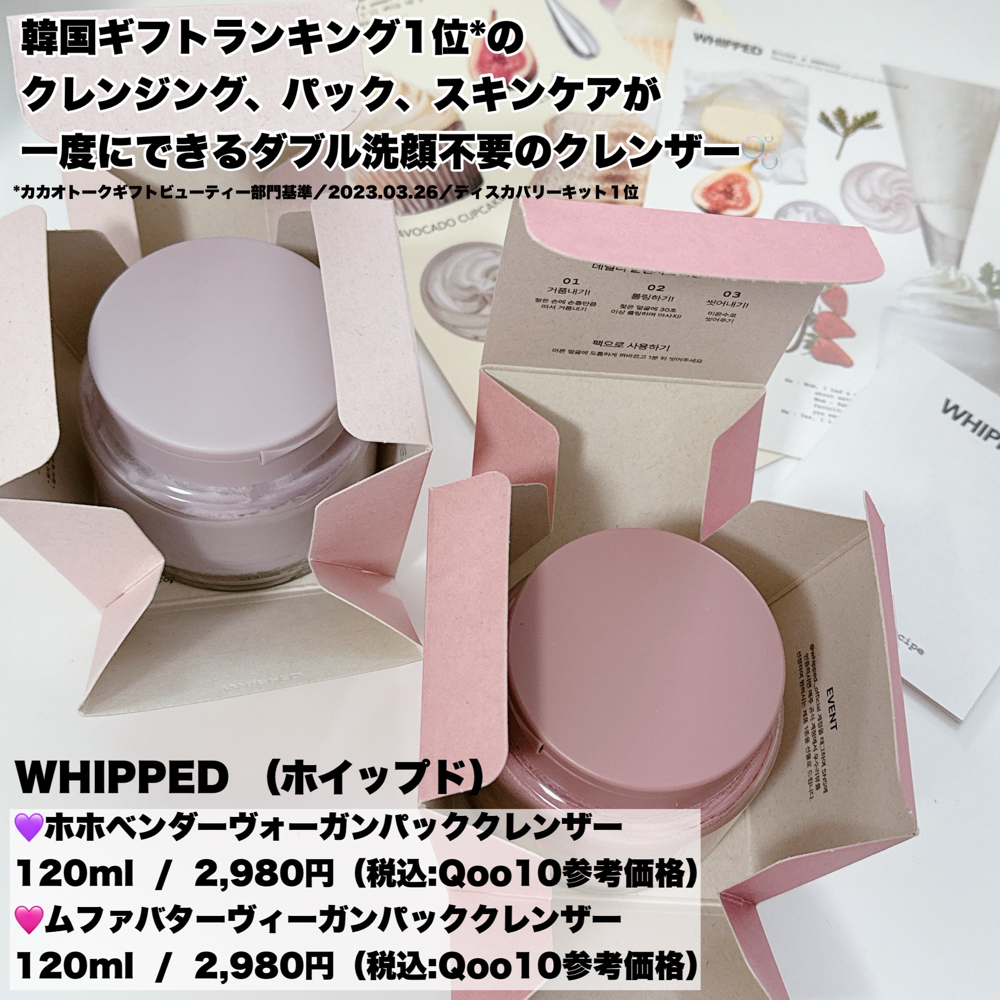 WHIPPEDホイップドヴィーガンパッククレンザーディスカバリーキット韓国カカオギフトランキング1位のベストセラーアイテムホイップみたいなパケが可愛すぎてギフトにまじでおすすめなんだけど、実は4/1にリニューアル🎉🩷ラインナップには人気のムフ...