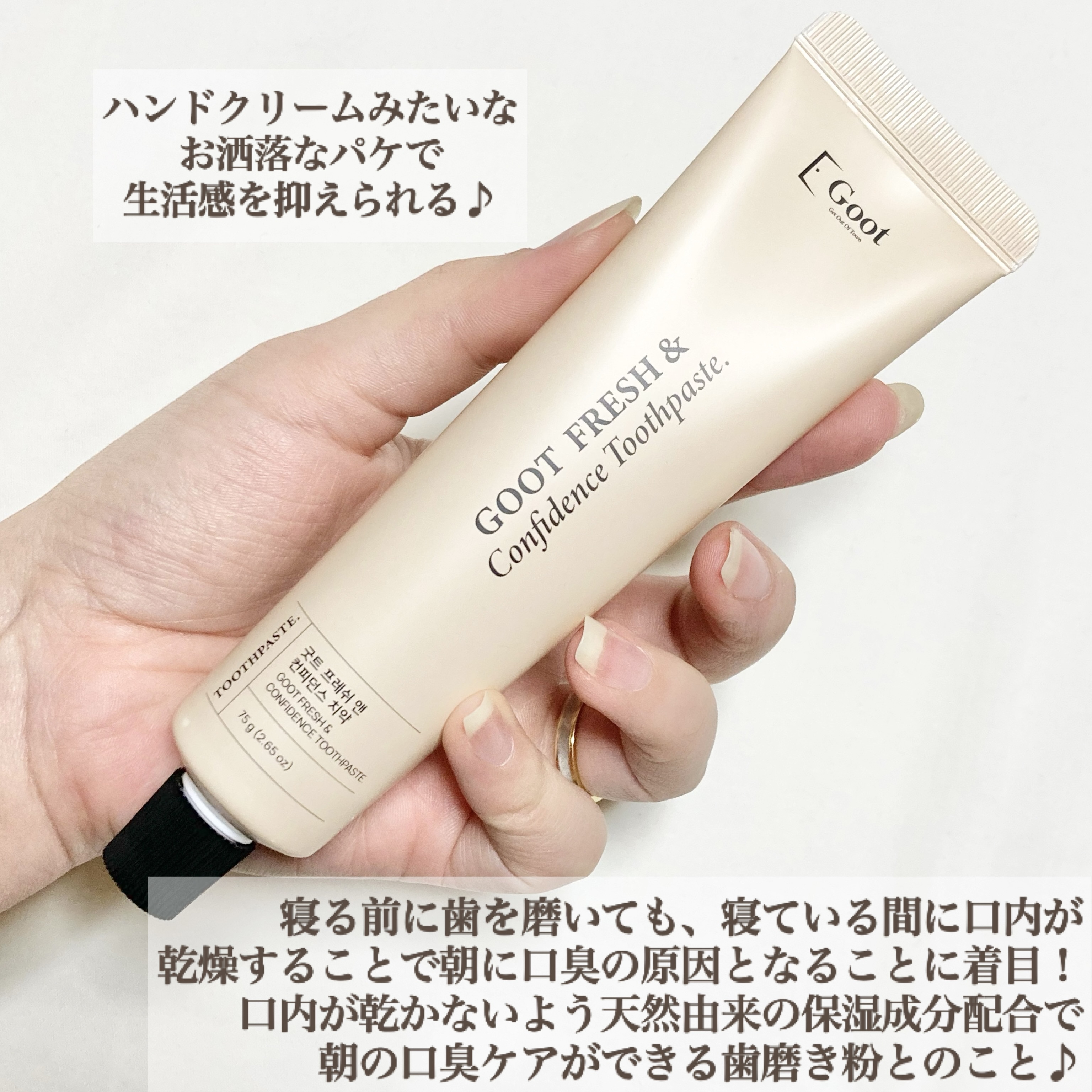 朝の口臭の原因は睡眠中に口が乾いて細菌が増殖するため。 天然由来ナトリウムPCAが口の中が乾かないよう保湿してくれます。 フランスのエコサート認証植物由来成分を配合。(緑茶、ローズマリー、カモミール) 臨床試験で1度使用するだけでも口臭減少を確認◎