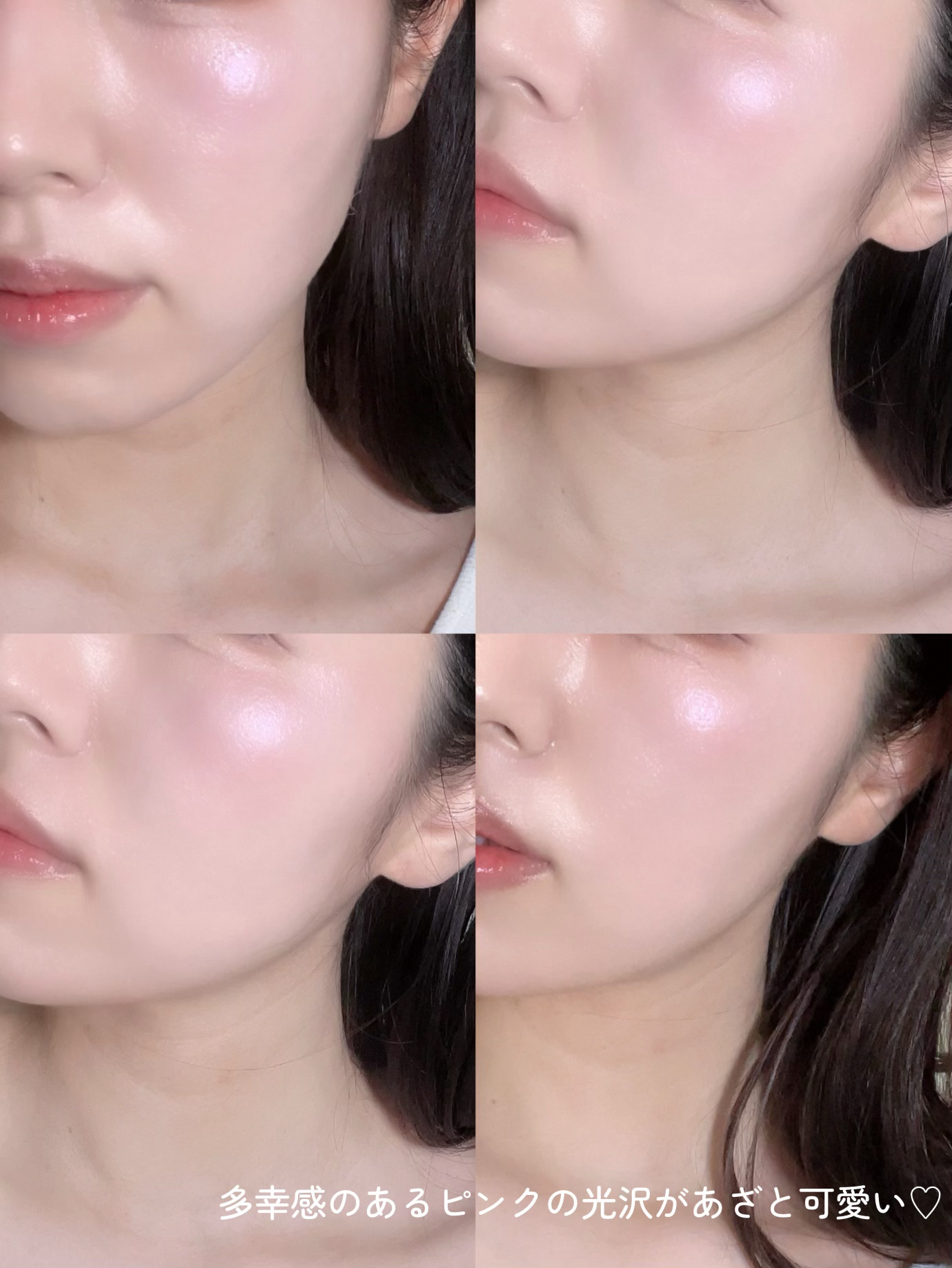 肌に馴染みやすくて、ツヤ感がものすごくきれいです🥺 伸ばすと細かいパールがデパコスのような繊細なキラキラ感を出してくれて、ハイライト効果もあります◎ さらに、使う時の「むにゅ」感にハマりすぎてずっとむにゅむにゅしちゃいます😂 クリームに指を滑らせると「とろっ」と指先で溶けていきます!!外に持っていっちゃうと結構溶けちゃうので注意が必要です⚠️ こんなに「生チーク」でとろけた質感ですが、寄れにくいのがすごいです🧐指で乗せても下地がよれませんでした!! これが限定色なのが悲しいレベルなので、定番化して欲しいです🥲♡絶対リピります!!