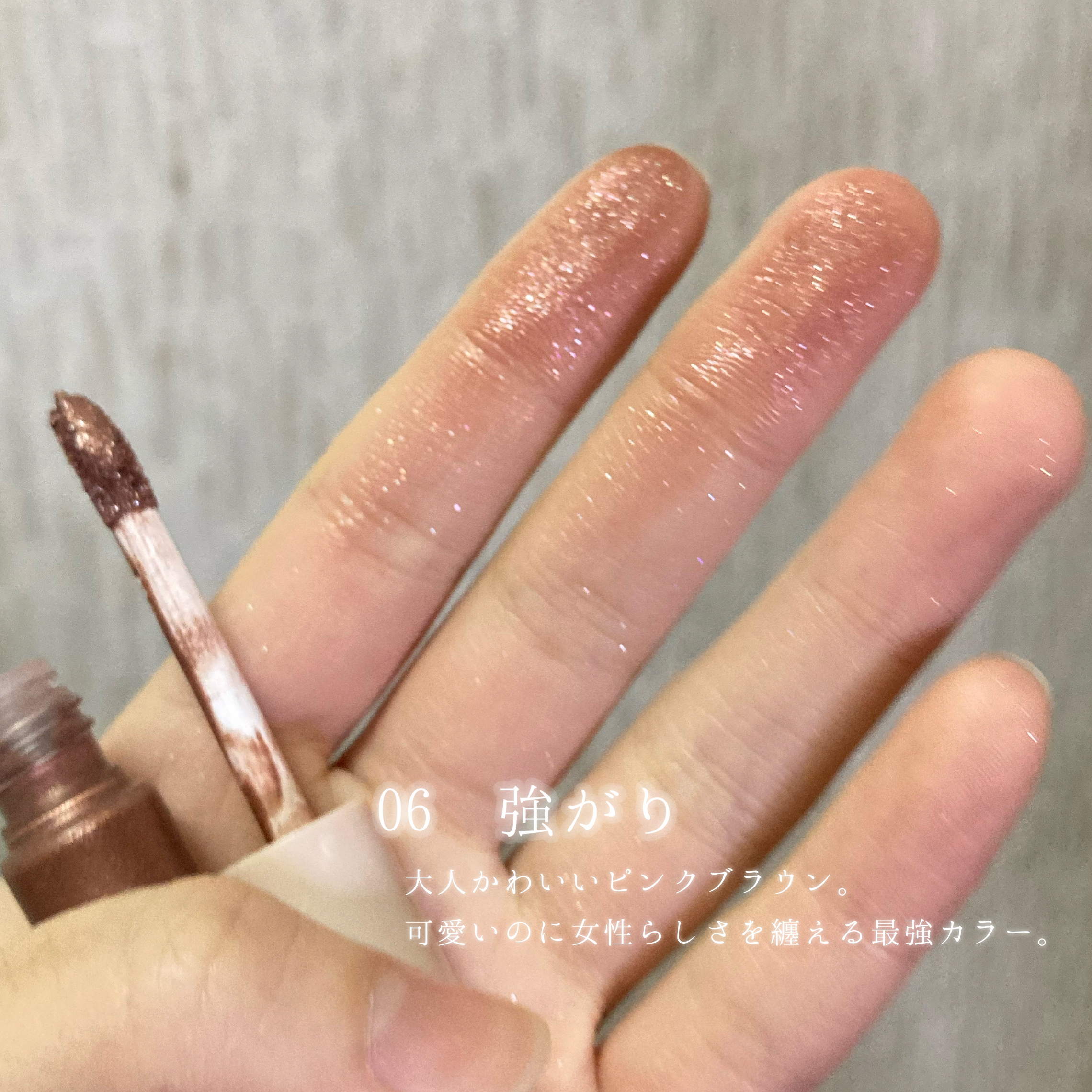 - リッチな輝きが長時間続く サラサラ仕上げのリキッドアイシャドウ 塗り心地はみずみずしくなめらかなのに、伸ばしていくうちにサラサラに変わる 魔法みたいなリキッドアイシャドウ♡ 速乾だからヨレにくく、ふたえのラインにたまりにくい! リキッドアイシャドウならではの輝きが長時間続きます。
