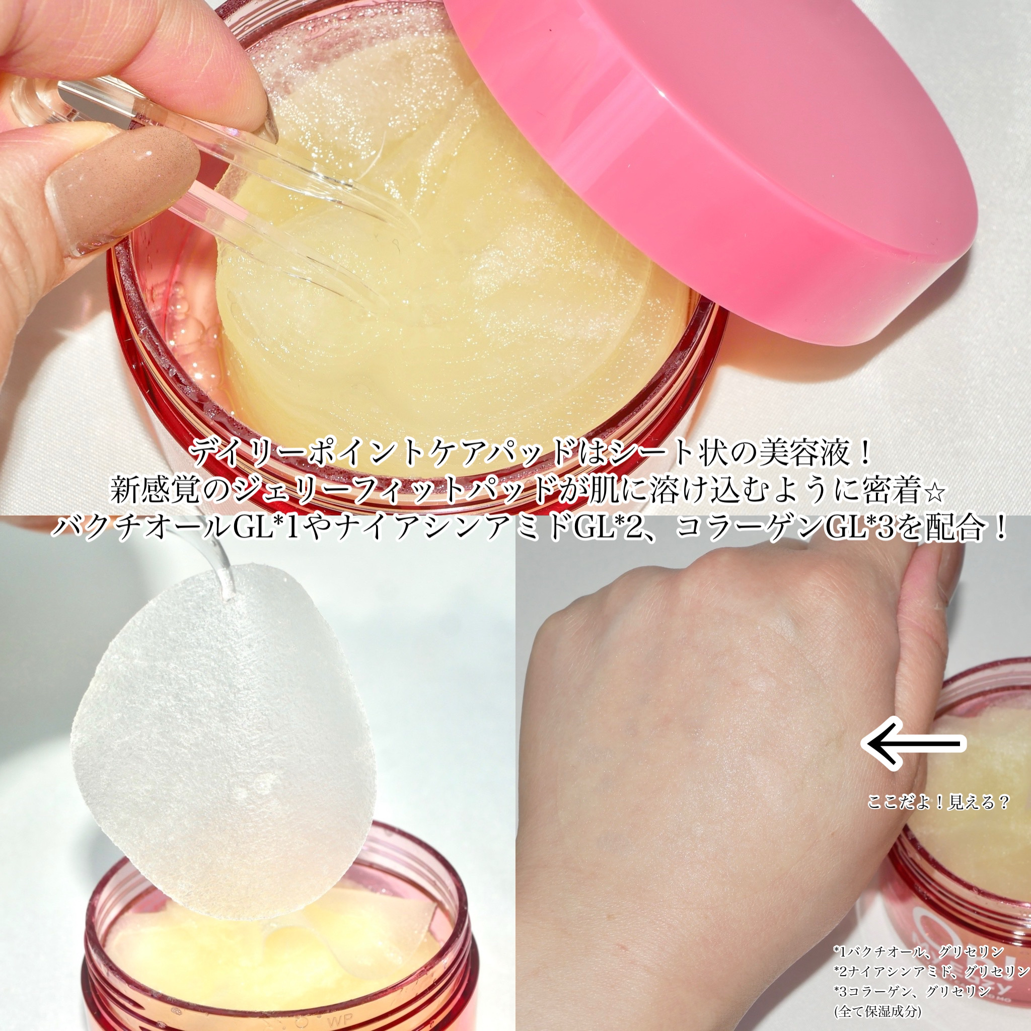 | パッド自体は柔らかく、美容液も多め。拭き取った後はしっかりとお肌が潤います♡ | 詳細を見る | ||