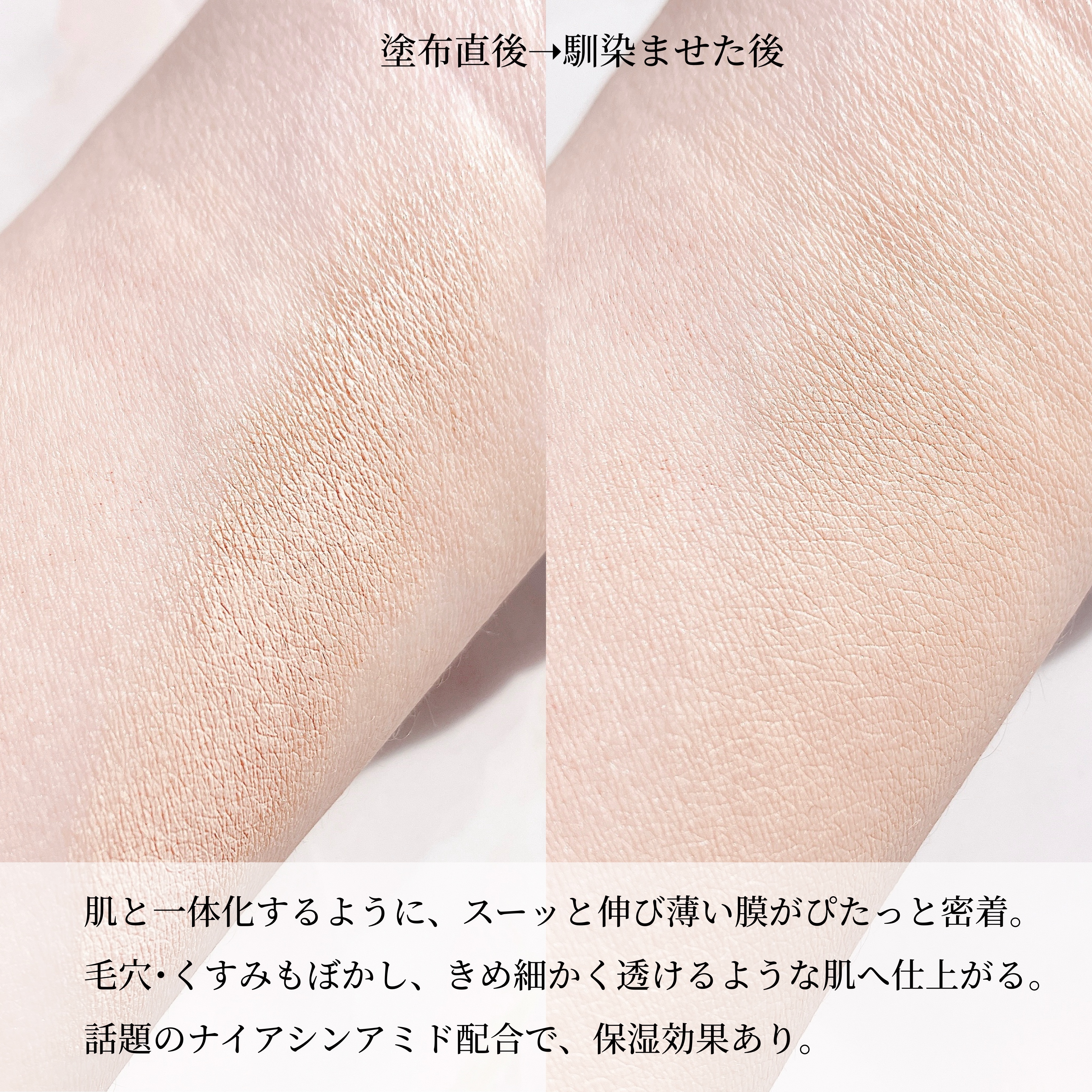 - 超うす膜なのに、崩れにくい。 全瞬間ビジュがいい。 1. 超うす膜が、ぴたっと密着 軽い微粒子が薄膜を作り、スーッと伸びて肌と一体化するように密着する、 「リアルスキンフィルム処方」を採用。 だから、時間がたっても、崩れにくい。 なのに、心地よさつづく。 2.毛穴レス*1で、透明感のある肌*2 薄膜なのに毛穴・くすみはぼかし、きめ細かく透けるような肌*1へ。 「ナイアシンアミド配合」*3 全6色展開 *1メイクアップ効果により毛穴をカバーすること *2メイクアップ効果による *3保湿効果 ※2026年2月10日〜パッケージリニューアル