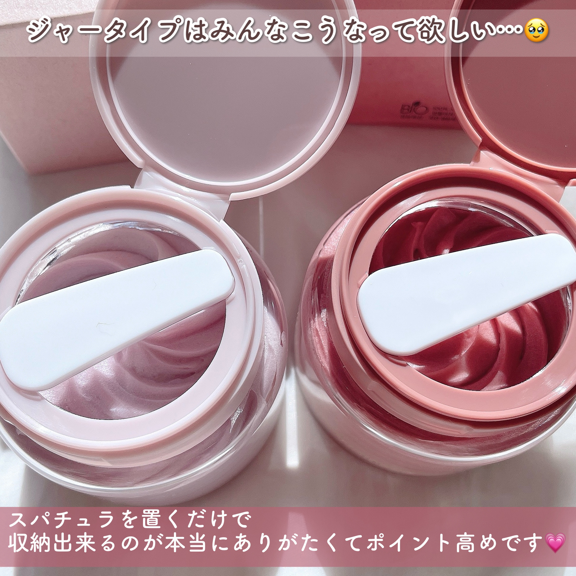 最初はバターみたいなテクスチャーで伸ばしていくとふわっとホイップみたいな柔らかい感じになっていく。 冬にぴったりな保湿感のある仕上がりだよ! 見た目も可愛くてプレゼントにもおすすめ🎁