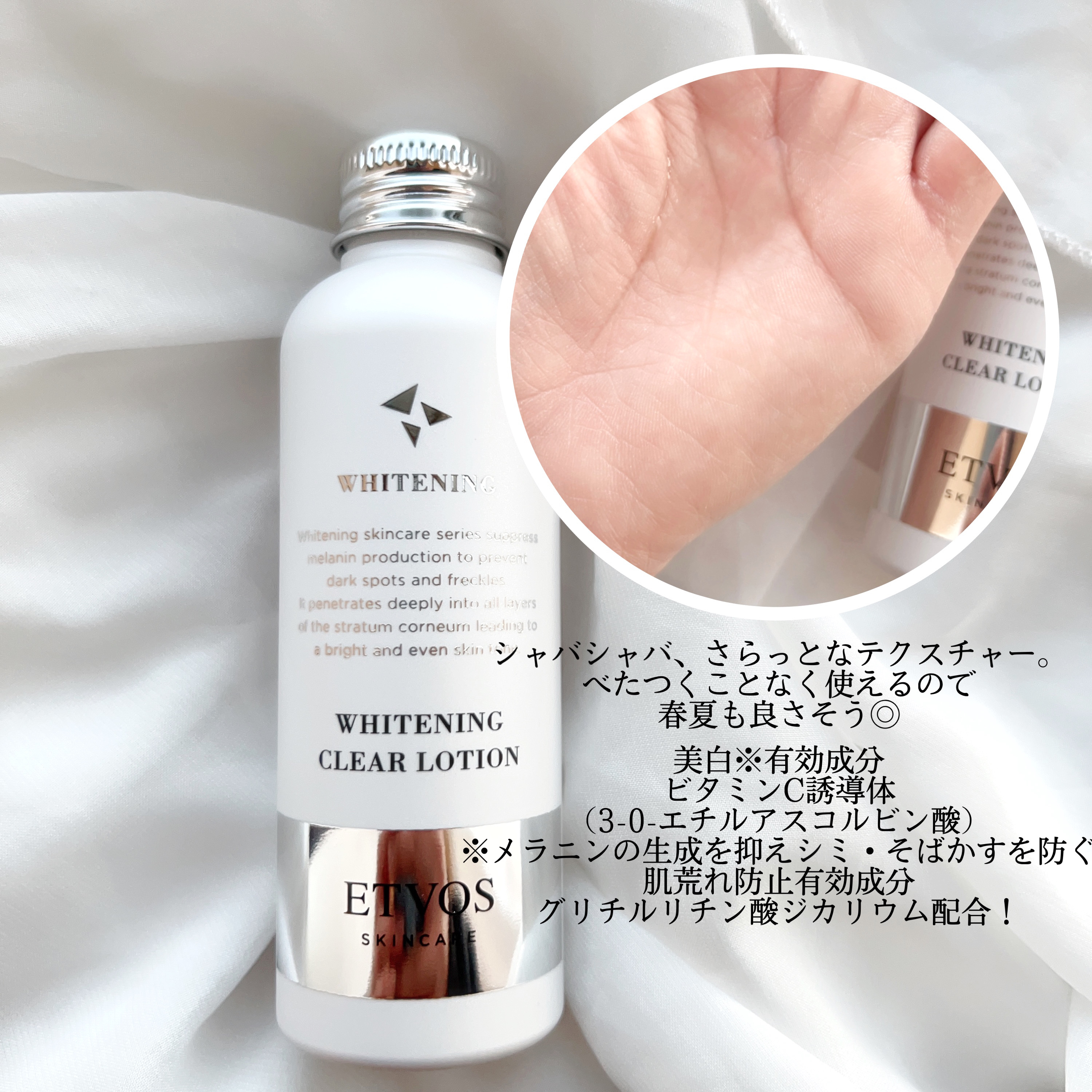 ◯ETVOS薬用ホワイトニングクリアセラムW50ml『シミ※1・くすみ※2を起こす前ぶれダメージ※3に立ち向かう※4こだわりの浸透※5感と保湿感を両立させた薬用美白※1保湿美容液※1メラニンの生成を抑え、シミ・そばかすを防ぐ※2乾燥による※3...