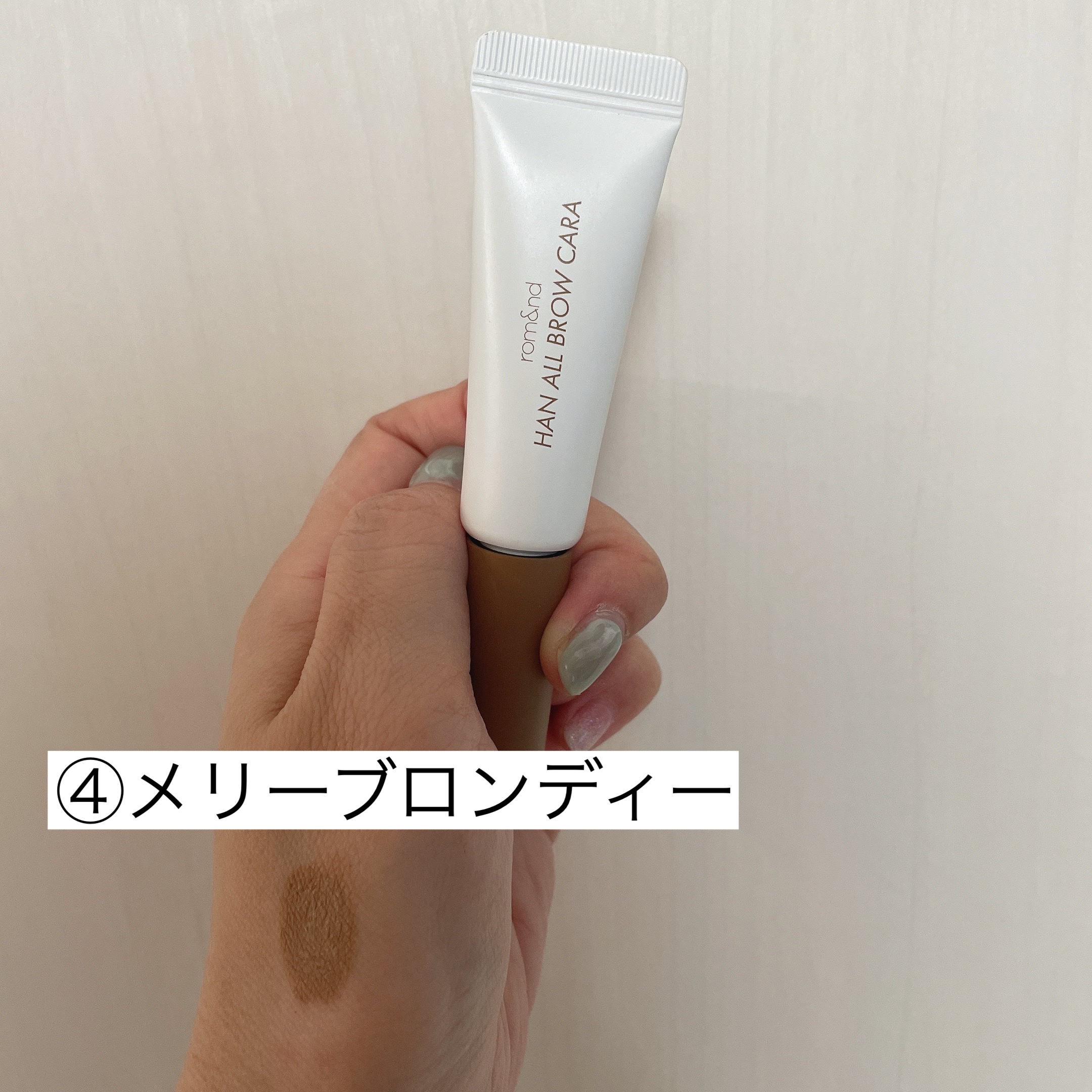 rom&ndハンオールブロウカラMERRYBLONDY04メリーブロンディーメガ割りで1000円以内で買える04メリーブロンディーはコンシーラーのような色黒眉を程よく明るくしてくれる発色がよくて持ちも良い方黒眉にカラーがのって垢抜けさせてくれ...