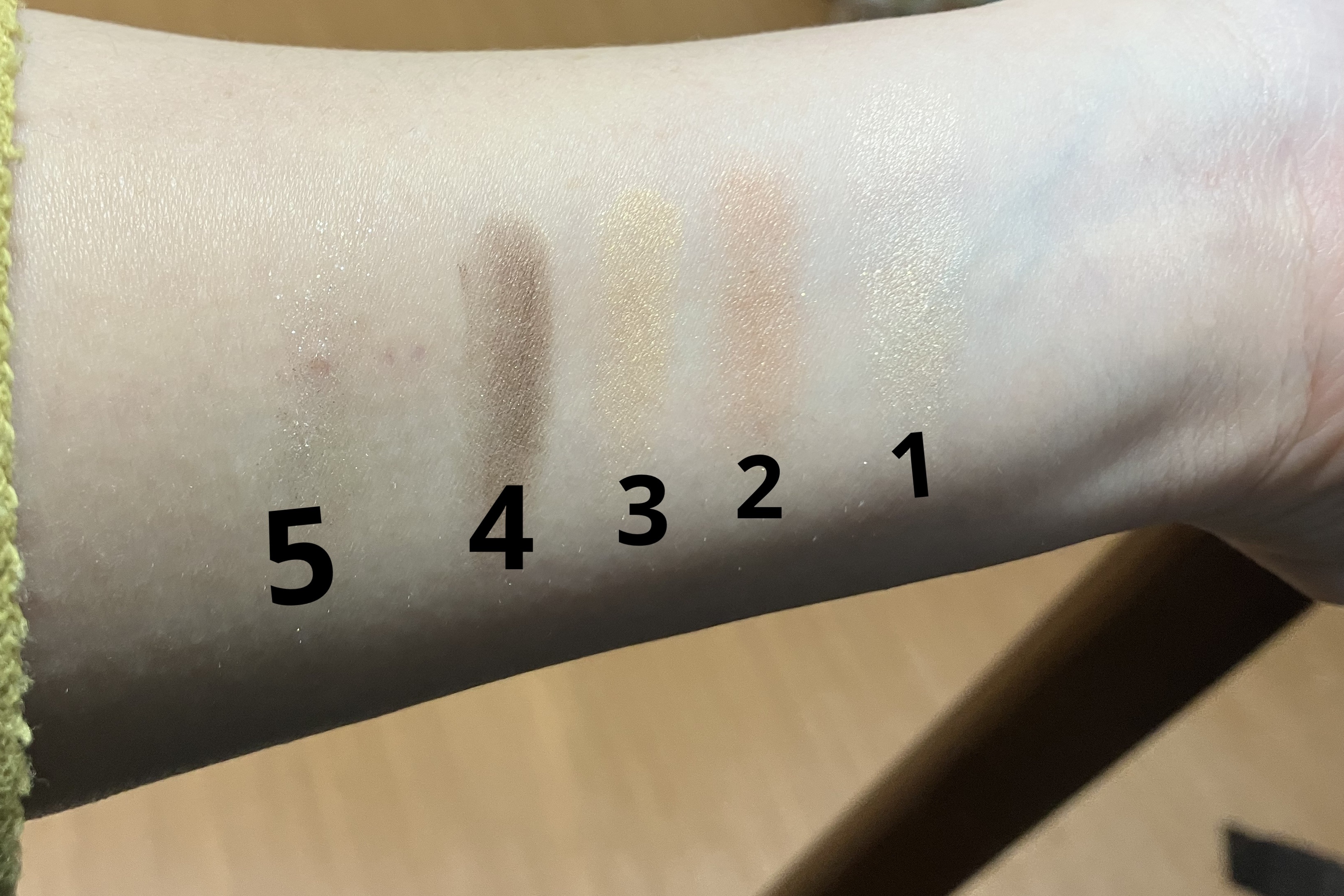 深みのあるくすみ系カラーが魅力の5色入りアイシャドウパレット。1つで2つの異なるメイクスタイルを楽しめるのが特徴で、スモーキーで落ち着いたトーンの色味が揃っています。 ラメは華やかだけど控えめで、普段使いにも特別な場面にも合わせやすいです。 粉質はしっとりしていてまぶたに密着しやすいです。プチプラながら発色も良く、コスパの高さがとにかく嬉しい♪