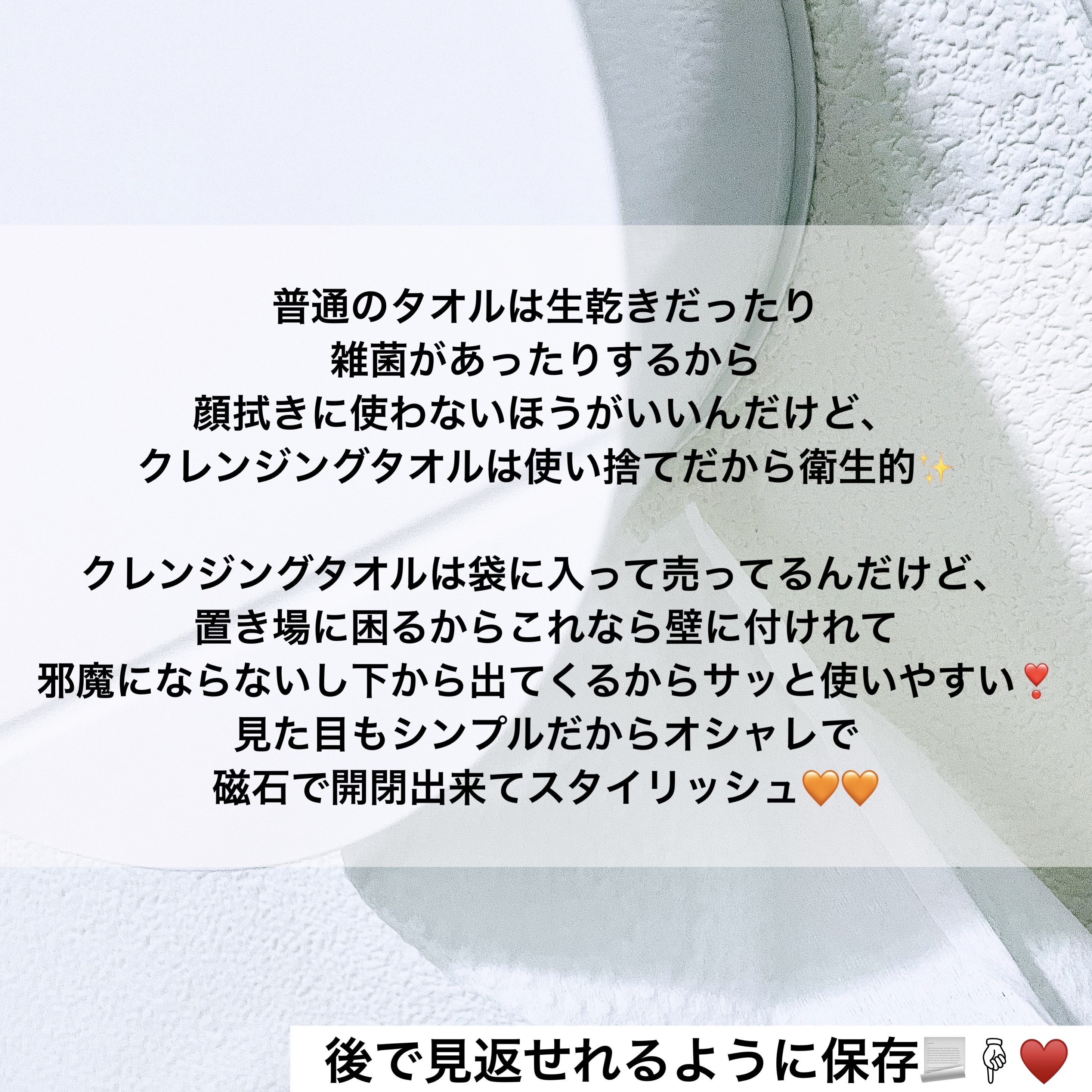 洗顔後は使い切りのタオルを使うように🤍 使い切りのタオルも種類がたくさん増えてきてる中、わたしのおすすめはITO クレンジングタオル✨ 万能すぎるこのクレンジングタオルは洗顔後にタオル代わりとして使うだけでなく、コットンのようにポイントメイク落としや化粧水を染み込ませてパックとしても使ったり💆🏻♀️ 生地は吸水性に優れていて、毛羽立たないから使ったあとも繊維が残らない🙌🏻