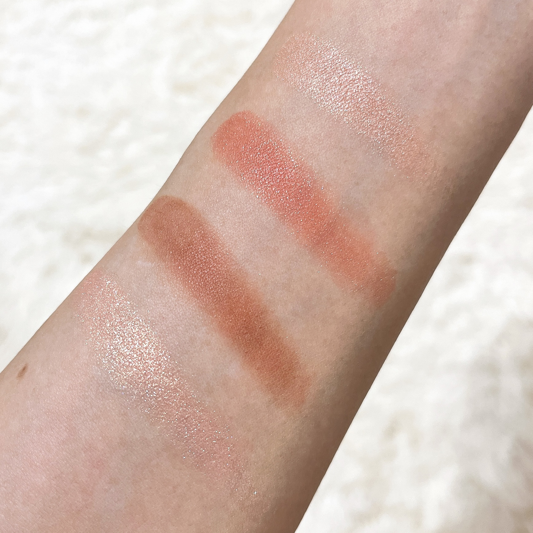 イエベさんにピッタリのあたたかみのあるブラウンで左半分はあわ〜い発色で右半分はしっかり発色するので調節したり使うカラーを変えると印象が変わります🥰💕 グリッターのところはラメ好きさんにはたまらない発色ですっごく可愛い…! ブラシだと粉飛びするのが気になるので指塗りが他のチップ塗りがおすすめです!