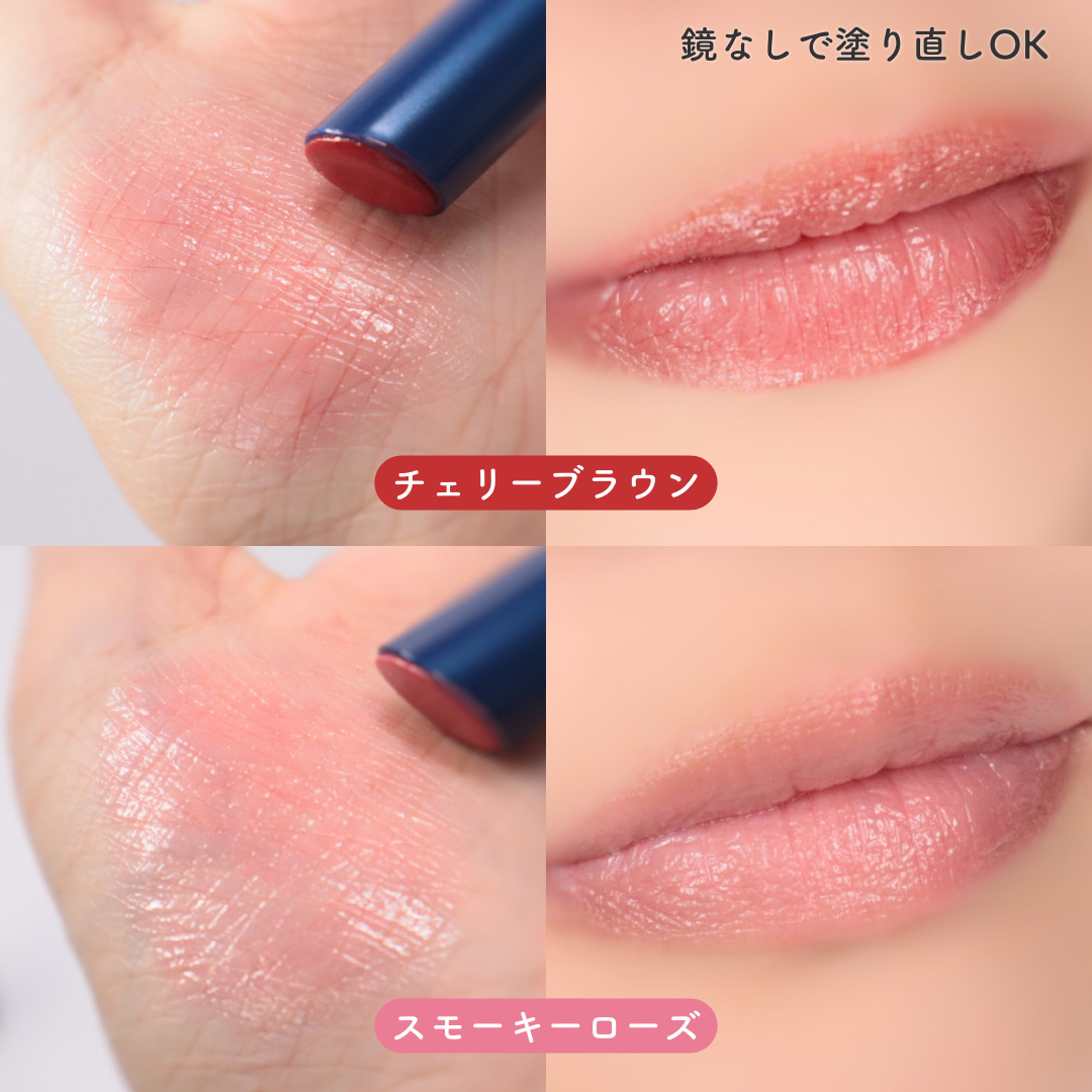 コスパ◎の色つきリップ 近所のドラストで割引されているから思わず色違いも買ってしまったよ 薄づきなのでほんのり血色が良くなる感じ。さっと塗るだけでツヤも出るから便利 持続力はそれなりだけど唇が乾燥しにくいだけでも助かる!