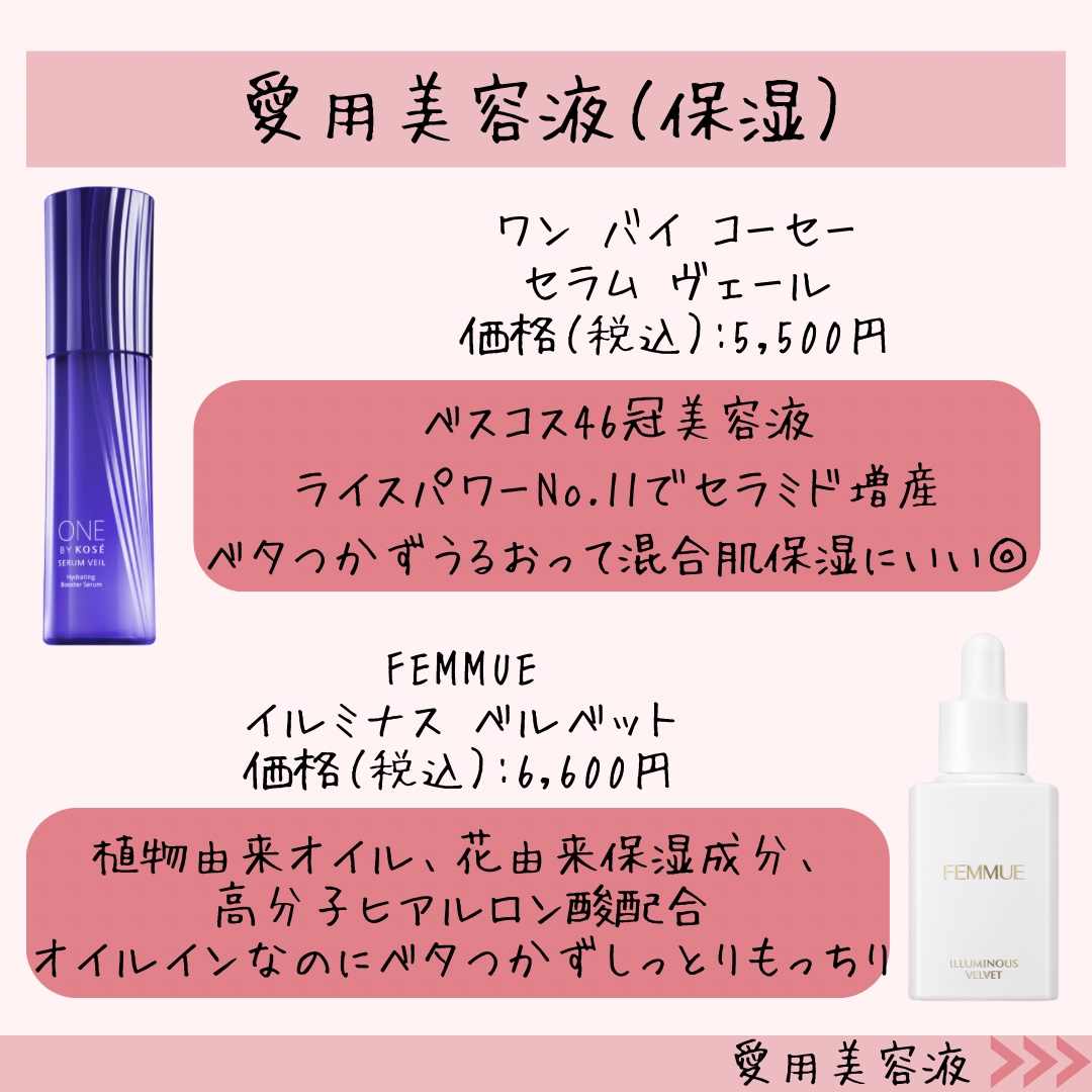 オイルインだけどサラッとしていてベタつきにくく、日々のスキンケアに取り入れやすいです。 ジャスミン・ネロリ系の香りも凛とした上品さがあってFEMMUEらしくて好き💐 インナードライ肌さん向けの保湿美容液。