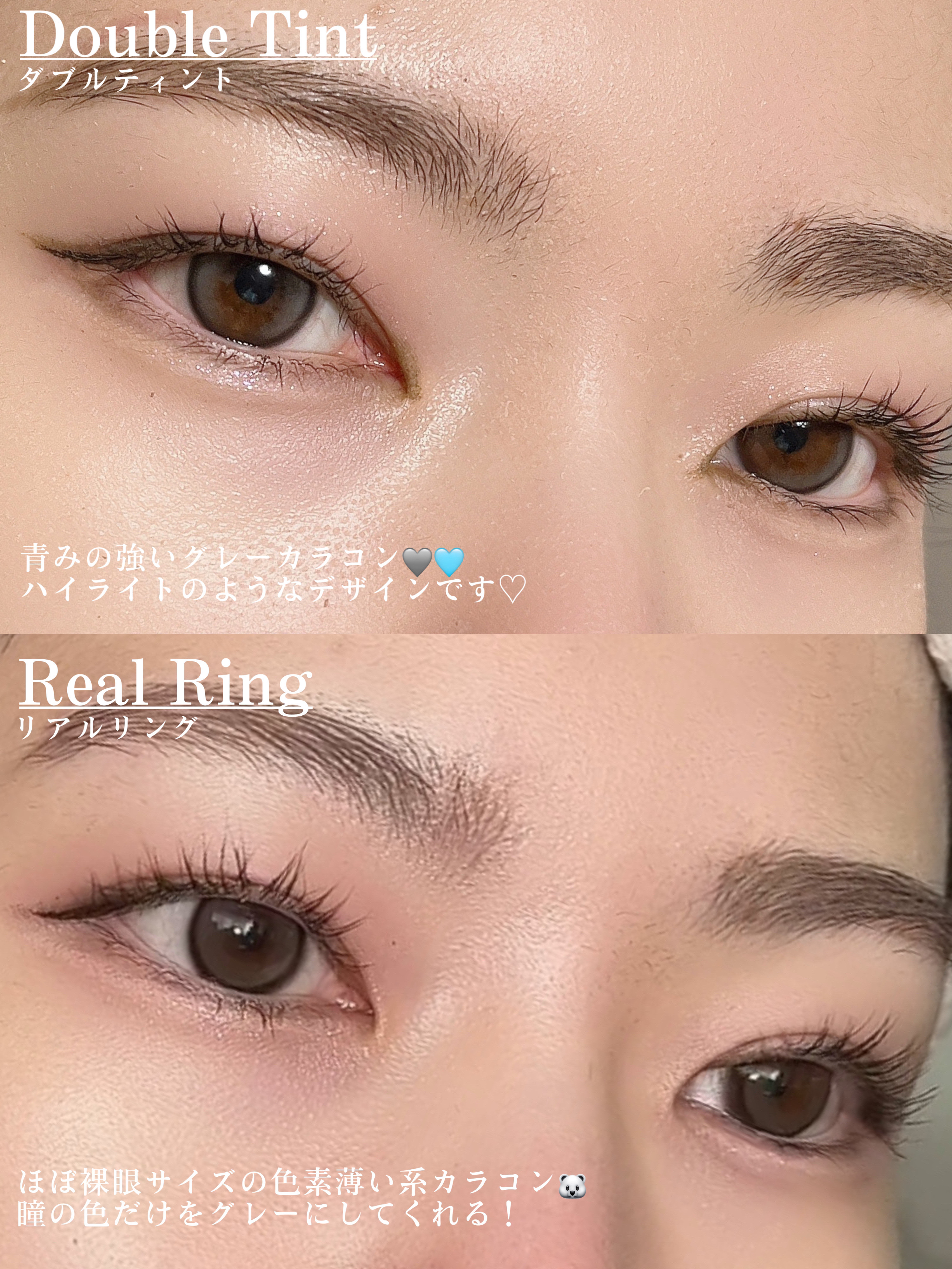黒目よりの焦げ茶の目でもちゃんと発色してくれるので、とってもきれいな透明感のあるグレーの瞳になれます🤍 とてもナチュラルで年齢問わずつけられそうです! 小さめサイズのカラコンは大人っぽい印象になる気がします🕊
