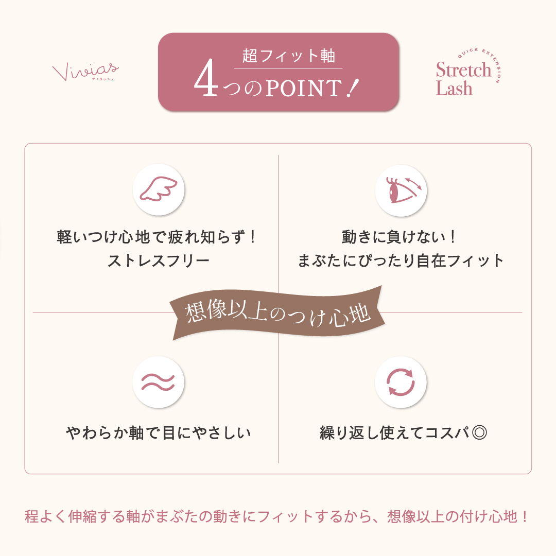 - これ、ほぼマツエク✨ 新発想💡軸が伸縮する ”超フィット”つけまつげ 細い極柔軟な軸が、伸縮してまぶたにフィット 圧倒的なフィット感! 想像以上のつけ心地💕 試して実感してください👀
