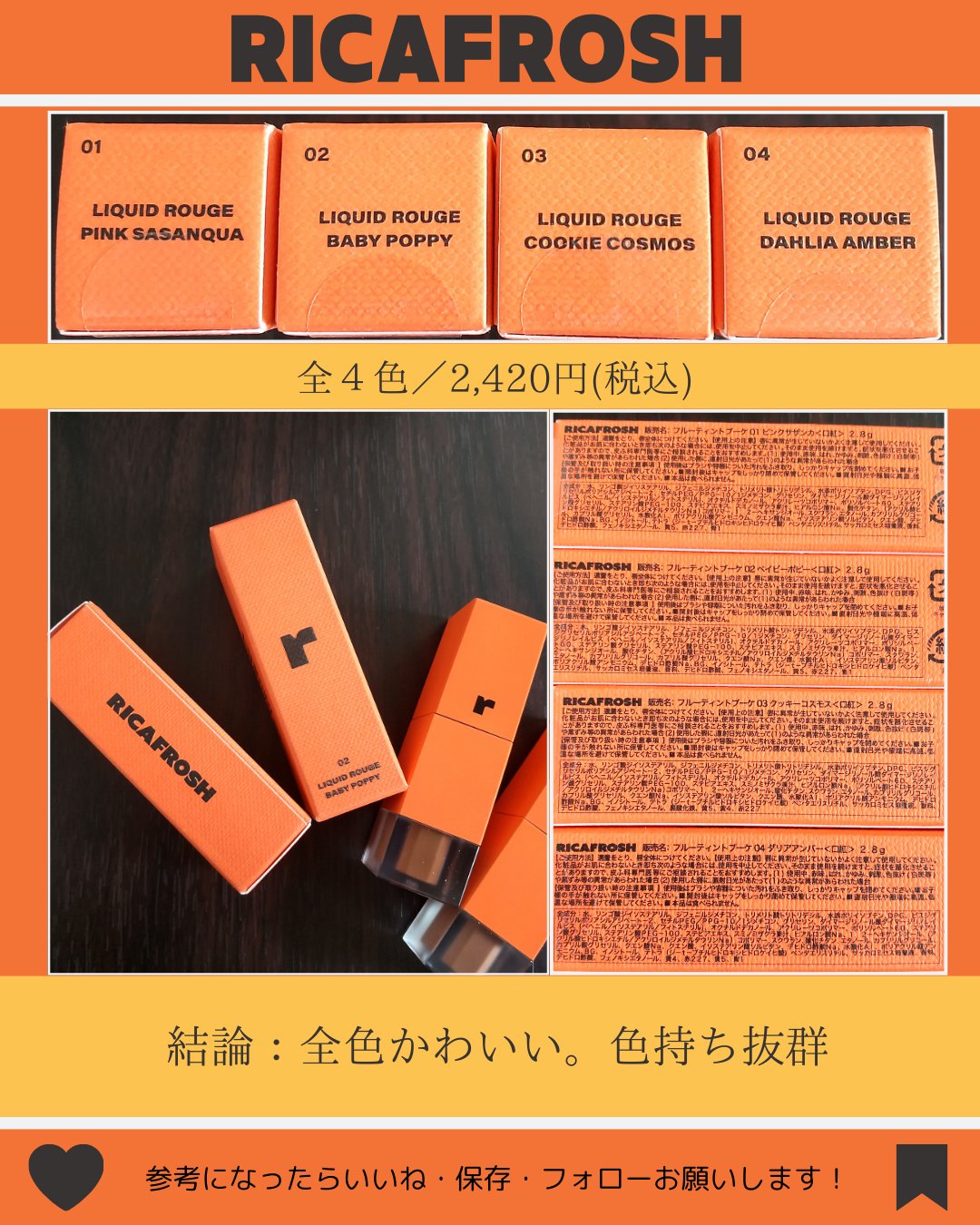 最近こればっかりつけてるリカフロッシュ フルーティントブーケ 01 ピンクサザンカ ピュアな印象のリカフロッシュのリップ。ブラウンのコレクションも絶妙だったけど、こっちもいい〜! 荒れない!嬉しい〜 ぷりぷりテクスチャも最高。大好き。