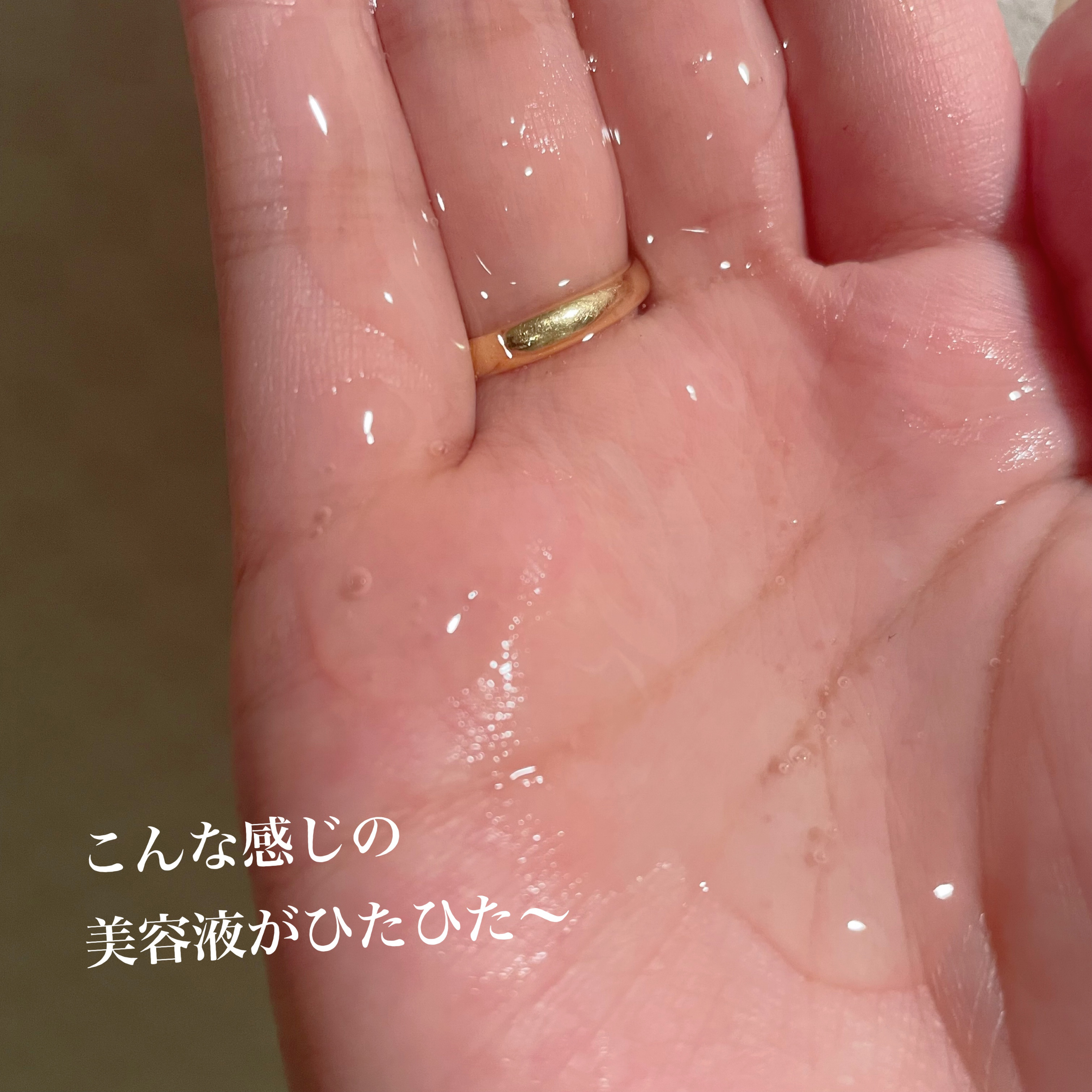 なんと、成分の65%以上が、肌にハリとうるおいを与える米ぬか発酵液! 手に出してみると、とろっと粘度のあるテクスチャーですが、顔に広げていくとべたっと感は消え、奥までしっかりと浸透してくれる感じがします。 化粧水をつけると吸収力の違いに驚きます🫢