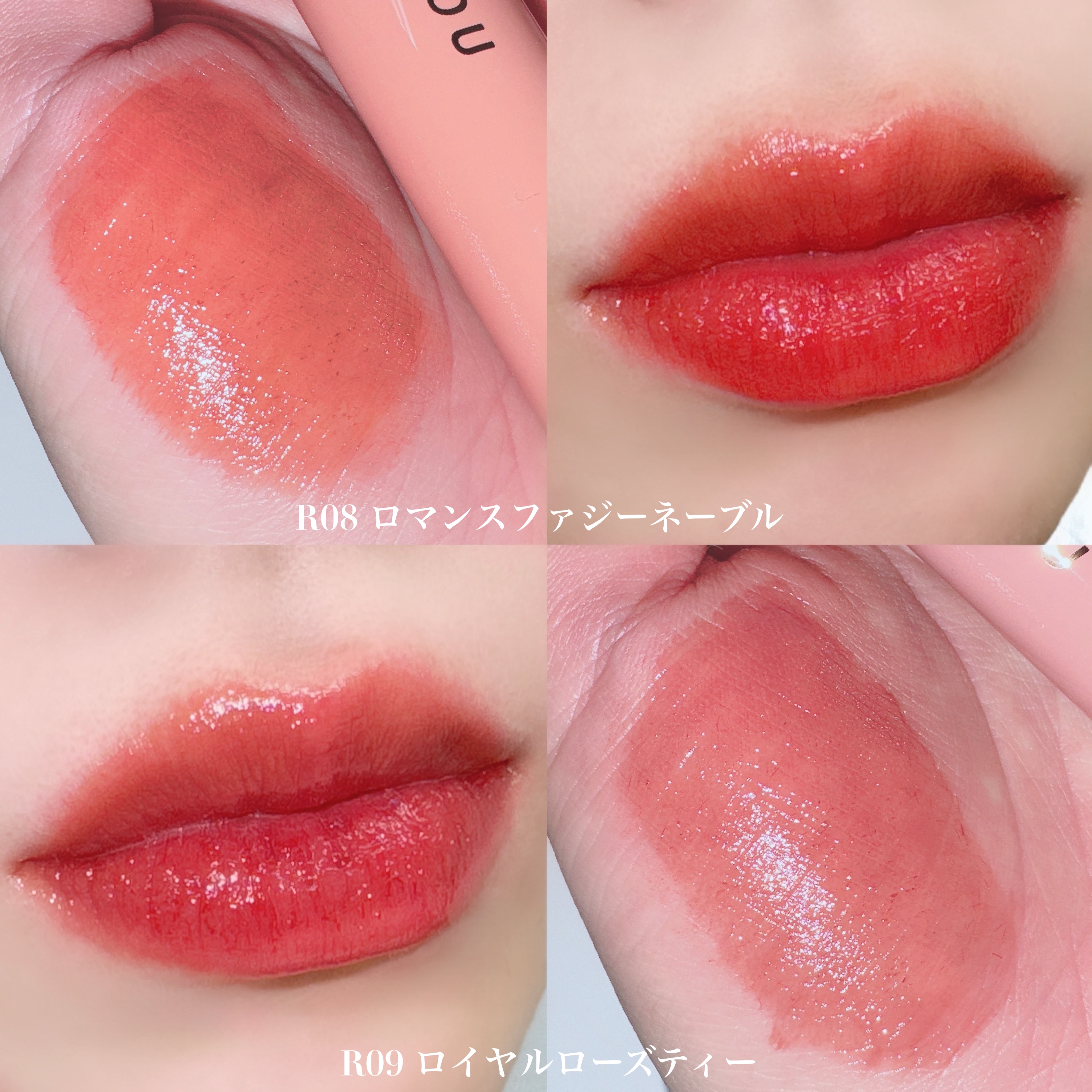 - R01 一目惚れアマレットジンジャー 水、ジフェニルジメチコン、ビスジグリセリルポリアシルアジペート-2、リンゴ酸ジイソステアリル、オクチルドデカノール、水添ポリイソブテン、ダイマージリノール酸ダイマージリノレイルビス(ベヘニル/イソステアリル/フィトステリル)、グリセリン、ジメチコン、セチルPEG/PPG-10/1ジメチコン、DPG、イソステアリン酸ソルビタン、ポリソルベート60、ペンチレングリコール、(ジメチコン/ビニルジメチコン)クロスポリマー、(アクリル酸ヒドロキシエチル/アクリロイルジメチルタウリンNa)コポリマー、セテアレス-20、スクワラン、フェノキシエタノール、酸化チタン、ミリスチン酸ポリグリセリル-10、黄5、BG、香料、エチルヘキシルグリセリン、赤227、青1、アルギニン、カルボマー、オニユリエキス、モモ果実エキス R02 甘えんぼピーチフィズ 水、ジフェニルジメチコン、ビスジグリセリルポリアシルアジペート-2、リンゴ酸ジイソステアリル、オクチルドデカノール、水添ポリイソブテン、ダイマージリノール酸ダイマージリノレイルビス(ベヘニル/イソステアリル/フィトステリル)、グリセリン、ジメチコン、セチルPEG/PPG-10/1ジメチコン、DPG、イソステアリン酸ソルビタン、ポリソルベート60、ペンチレングリコール、(ジメチコン/ビニルジメチコン)クロスポリマー、(アクリル酸ヒドロキシエチル/アクリロイルジメチルタウリンNa)コポリマー、セテアレス-20、スクワラン、フェノキシエタノール、ミリスチン酸ポリグリセリル-10、BG、酸化チタン、香料、黄5、エチルヘキシルグリセリン、赤227、赤104(1)、青1、アルギニン、カルボマー、オニユリエキス、モモ果実エキス R03 わがままロゼワイン 水、ジフェニルジメチコン、ビスジグリセリルポリアシルアジペート-2、リンゴ酸ジイソステアリル、オクチルドデカノール、水添ポリイソブテン、ダイマージリノール酸ダイマージリノレイルビス(ベヘニル/イソステアリル/フィトステリル)、グリセリン、ジメチコン、セチルPEG/PPG-10/1ジメチコン、DPG、イソステアリン酸ソルビタン、ポリソルベート60、ペンチレングリコール、(アクリル酸ヒドロキシエチル/アクリロイルジメチルタウリンNa)コポリマー、(ジメチコン/ビニルジメチコン)クロスポリマー、セテアレス-20、スクワラン、フェノキシエタノール、ミリスチン酸ポリグリセリル-10、BG、香料、黄5、赤227、エチルヘキシルグリセリン、青1、アルギニン、カルボマー、オニユリエキス、モモ果実エキス R04 いたずらカシスコーク 水、ジフェニルジメチコン、ビスジグリセリルポリアシルアジペート-2、リンゴ酸ジイソステアリル、オクチルドデカノール、水添ポリイソブテン、ダイマージリノール酸ダイマージリノレイルビス(ベヘニル/イソステアリル/フィトステリル)、グリセリン、ジメチコン、セチルPEG/PPG-10/1ジメチコン、DPG、イソステアリン酸ソルビタン、ポリソルベート60、ペンチレングリコール、(ジメチコン/ビニルジメチコン)クロスポリマー、(アクリル酸ヒドロキシエチル/アクリロイルジメチルタウリンNa)コポリマー、セテアレス-20、スクワラン、黄5、フェノキシエタノール、ミリスチン酸ポリグリセリル-10、酸化チタン、赤227、BG、香料、エチルヘキシルグリセリン、青1、アルギニン、カルボマー、オニユリエキス、モモ果実エキス R05 気ままチェリーブランデー 水、ジフェニルジメチコン、ビスジグリセリルポリアシルアジペート-2、リンゴ酸ジイソステアリル、オクチルドデカノール、水添ポリイソブテン、ダイマージリノール酸ダイマージリノレイルビス(ベヘニル/イソステアリル/フィトステリル)、グリセリン、ジメチコン、セチルPEG/PPG-10/1ジメチコン、DPG、イソステアリン酸ソルビタン、ポリソルベート60、ペンチレングリコール、(ジメチコン/ビニルジメチコン)クロスポリマー、(アクリル酸ヒドロキシエチル/アクリロイルジメチルタウリンNa)コポリマー、セテアレス-20、スクワラン、酸化チタン、フェノキシエタノール、ミリスチン酸ポリグリセリル-10、黄5、BG、香料、赤227、エチルヘキシルグリセリン、黄4、青1、アルギニン、カルボマー、オニユリエキス、モモ果実エキス R06 誘惑チョコリキュール 水、ジフェニルジメチコン、ビスジグリセリルポリアシルアジペート-2、リンゴ酸ジイソステアリル、オクチルドデカノール、水添ポリイソブテン、ダイマージリノール酸ダイマージリノレイルビス(ベヘニル/イソステアリル/フィトステリル)、グリセリン、ジメチコン、セチルPEG/PPG-10/1ジメチコン、DPG、イソステアリン酸ソルビタン、ポリソルベート60、ペンチレングリコール、(ジメチコン/ビニルジメチコン)クロスポリマー、(アクリル酸ヒドロキシエチル/アクリロイルジメチルタウリンNa)コポリマー、セテアレス-20、スク R07 ほろ甘サングリア 水、ジフェニルジメチコン、ビスジグリセリルポリアシルアジペート-2、リンゴ酸ジイソステアリル、オクチルドデカノール、水添