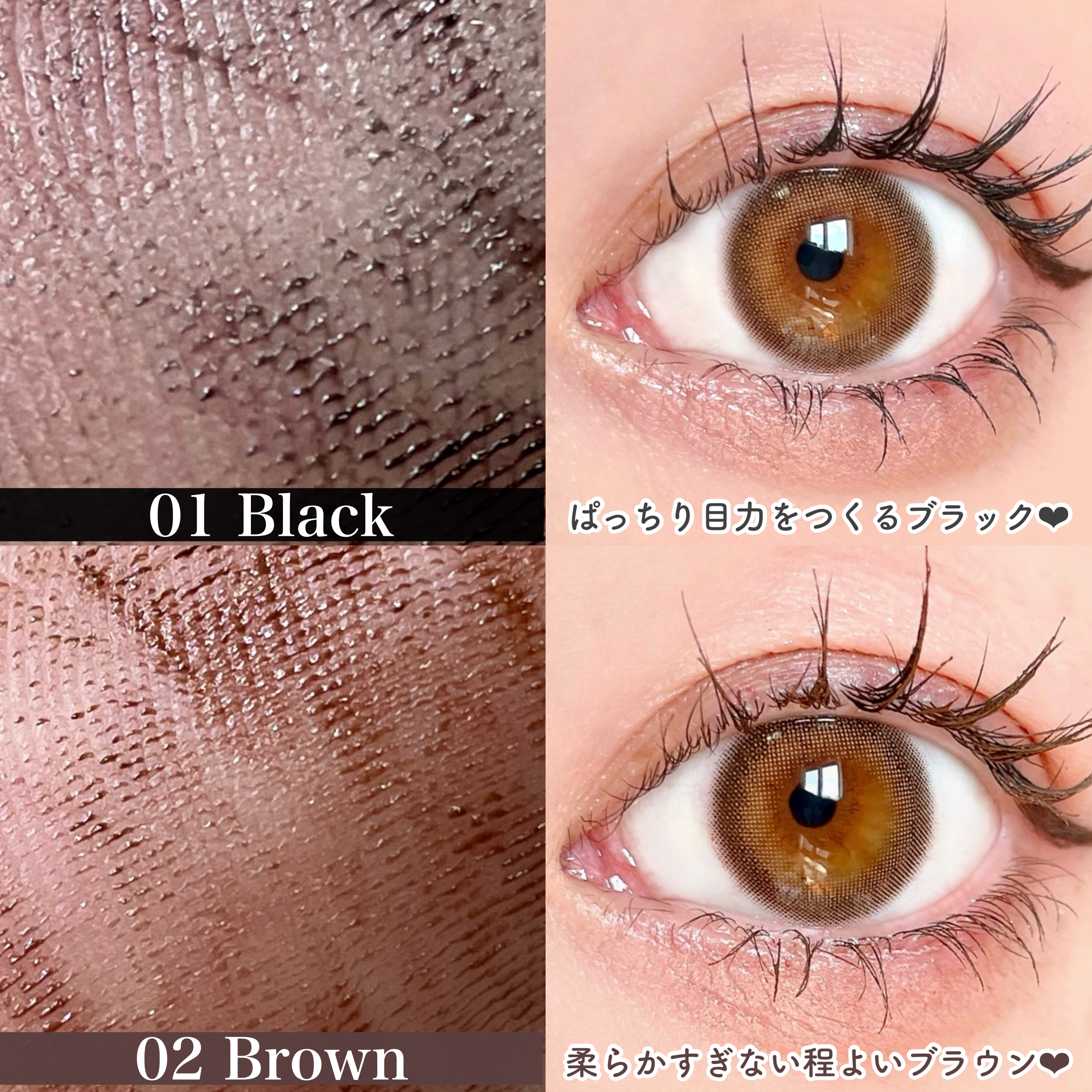- 01 ブラックは2024年4月以降順次定番化! メタルコームが塗りやすい♡ 自分好みの束感がつくれるマスカラ 流行りの束感まつげ、今日はどのルックにする? ♡繊細な束感をつくるための極細メタルコーム 束感のあるまつげをつくるために設計された均一なピッチが、 程よく数本のまつげを束ねます。 届きにくい目頭や目尻のまつげも塗りやすい! ♡重ね塗りで自分好みの束感に なめらかな液がまつげに均一につくので、 重ね塗りをしてもダマになりにくい! 繊細でナチュラルな束感~盛り束感まで、これ1本で自由自在♪