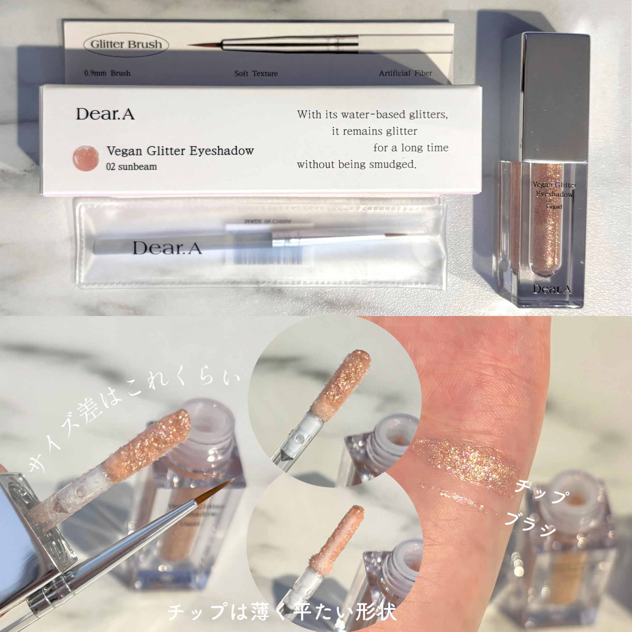 デザインがまずオシャレ! 持っていてテンションが上がります。みずみずしい塗り心地で、ぷるんぷるんに仕上がります✨ そして色味がめーーーーっちゃ可愛い🫰 ブルベさんには是非是非使ってほしい〜💗 このブラシが有能すぎる! 極細ブラシだから下まぶたに思うがままにラメをのせることができます❣️
