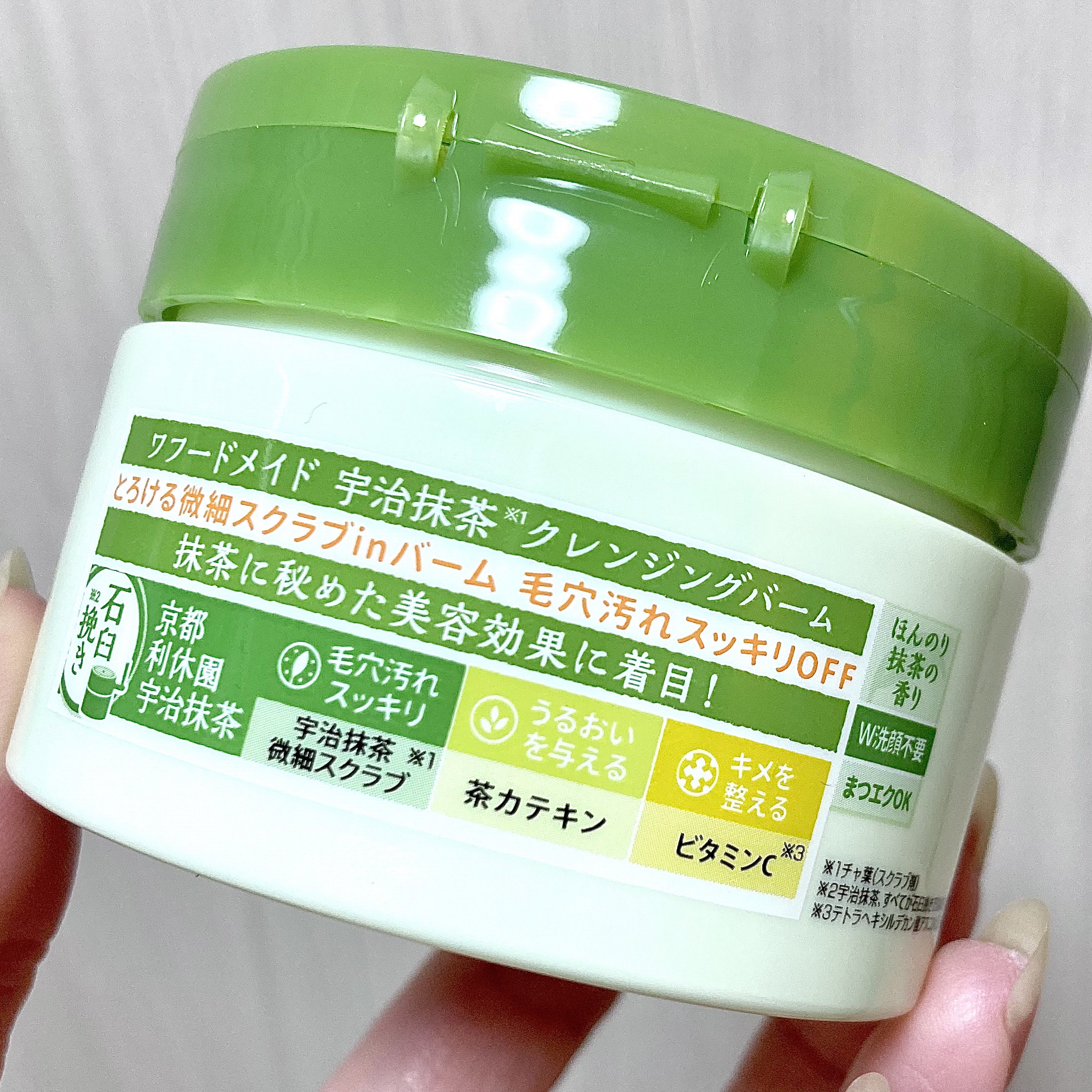 - 宇治抹茶微細スクラブ配合のとろけるクレンジングバームが新登場!メイク汚れ&毛穴ケア汚れを洗い落として透明感UP! マツエクOK、W洗顔不要、パラベンフリーです★ 乾燥による敏感肌にもお使いいただけます! アレルギーテスト・パッチテスト済み (全ての方にアレルギーや皮膚刺激が起こらないということではありません)