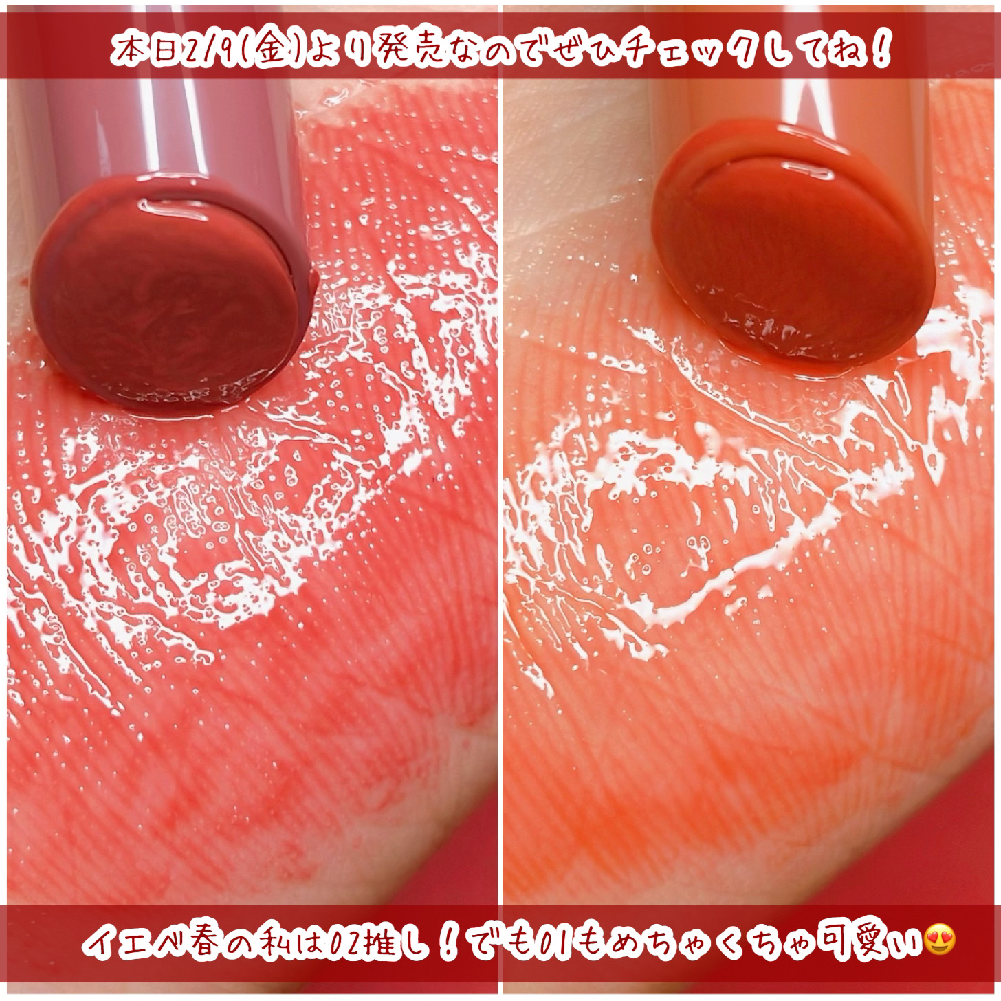 使用感は少し重い感じですが、その分保湿力バッチリです👌🏻手元にリップクリームがない時、そのまま塗ってもしっとり保湿してくれます🌟 ツヤ感、むっちり感は最高です💖両方のカラーともイエベブルベに寄りすぎていないですし、発色もすごく強いわけではないので、あまりパーソナルカラー問わず使えると思います✨ 洗練された印象を与える大人モーヴ、イチジクみたいに熟したコーラルレッド