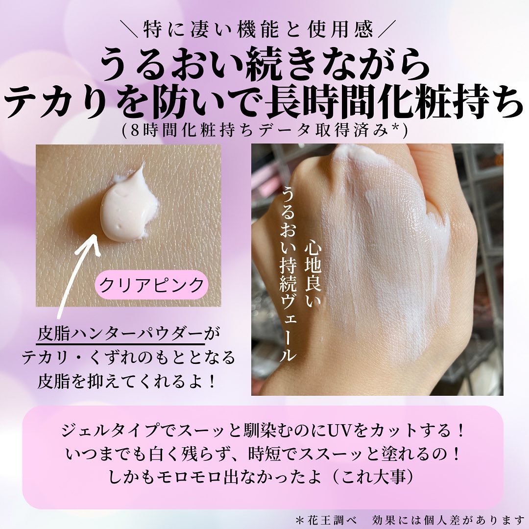 - 顔用日やけ止めジェル UV下地が7つの機能でアプローチ 朝塗りたての顔印象つづく。美耐久プライマーUV ●7アプローチ設計 【日やけによるシミを防ぐ】強力UVをカットし日やけによるシミ・ソバカスを防ぐ。 SPF50・PA++++・UV耐水性★★ 【素肌美仕上げ】素肌トーンアップ設計でパールが輝きどこから見てもツヤめく仕上がりへ導く 【化粧ノリUP】UV塗膜の上にぴったりファンデーションが密着し化粧ノリがUP 【化粧持ち持続】皮脂ハンターパウダーが過剰な皮脂を吸着し、テカリ・べたつきを防ぐ 【うるおい持続】水相成分約65%の密着ジェル。うるおい持続ヴェールを形成し、うるおった肌が長時間つづく 【透明感UP】微細なパールでメイクの上からでも透明感を足せる 【厚塗り感なし】リタッチ設計でメイクの上からヨレずにキレイにUVを塗り直せる ●マスク・タオル等につきにくい ●ニキビになりにくい処方(ノンコメドジェニックテスト済*2) *2 コメド(ニキビのもと)のできにくいことを確認するテストです。すべての方にコメド(ニキビのもと)ができないというわけではありません。 ●普段のメイククレンジングで落とせる ●美容液成分(保湿)配合 ヒアルロン酸Na ●汗・水・摩擦に強い 【フリクションプルーフ】日常のこすれ・摩擦に強く落ちにくい機能 【スーパーウォータープルーフ】水に抜群に強く落ちにくい機能 【スウェットプルーフ】汗に強く落ちにくい機能 ●ビーチフレンドリー処方 環境に配慮した設計(水環境リスク評価済み) ●環境に配慮 外装・容器には環境に配慮した素材を使用しています。FSC認証 ●8時間化粧持ちデータ取得済み(当社調べ。効果には個人差があります)