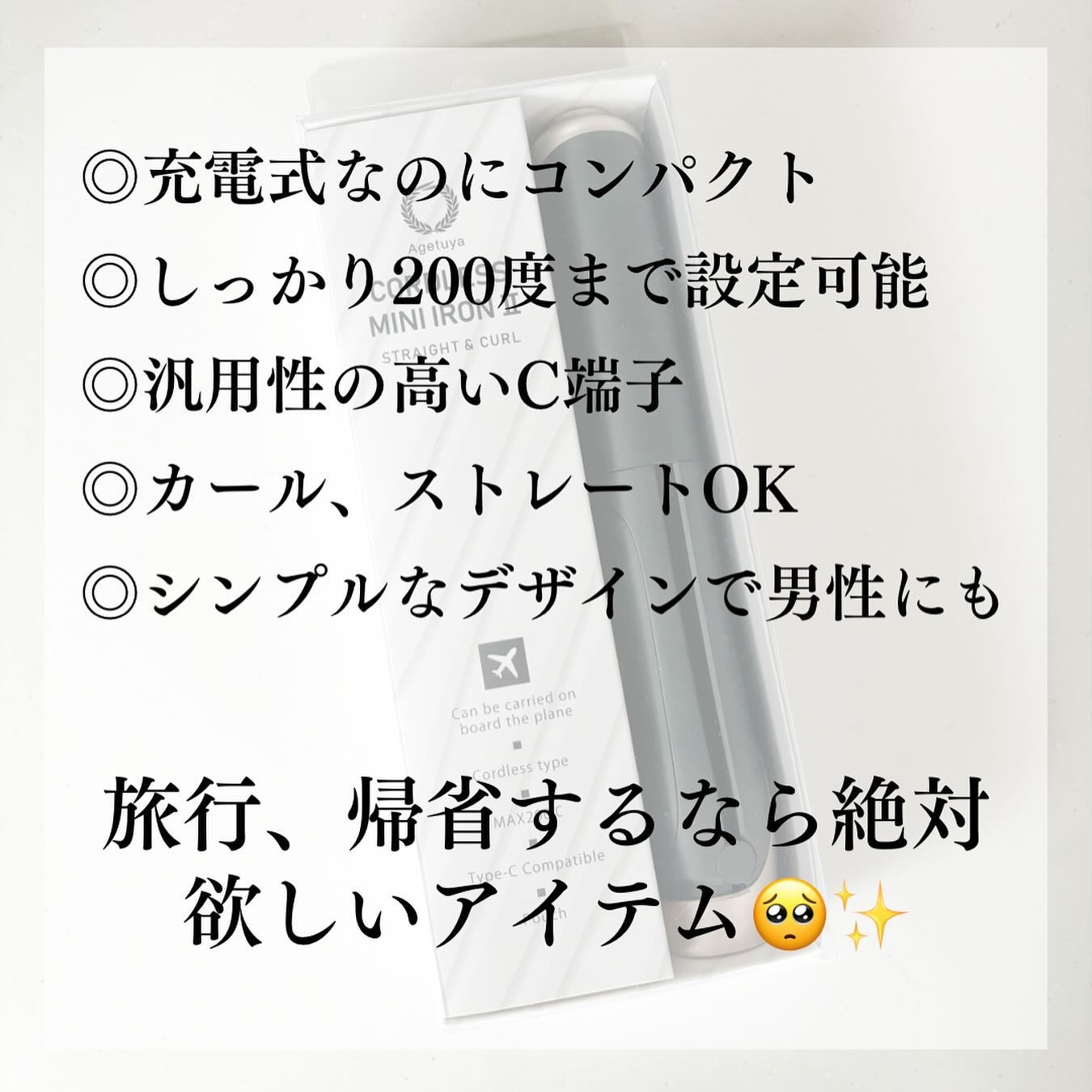 商品詳細情報agetuya Agetuyaコードレスミニヘアアイロン