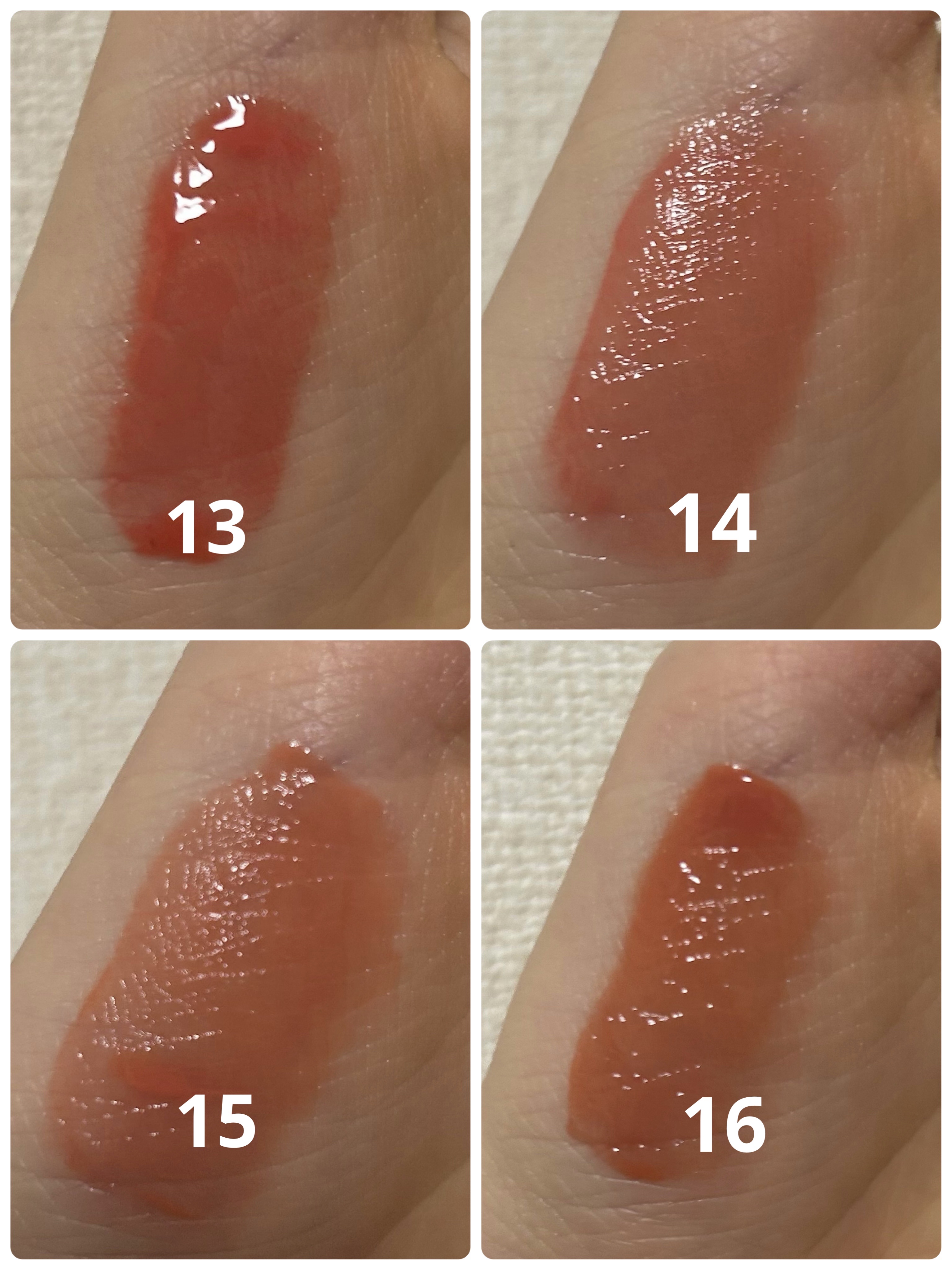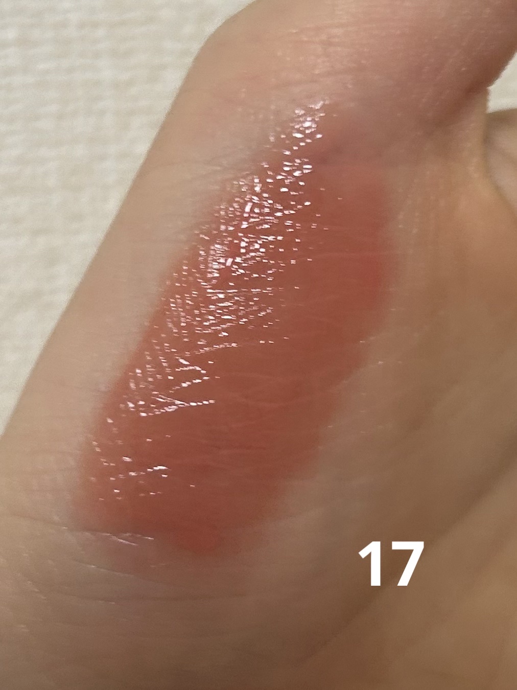 ティッシュオフしてもツヤ感残ってるし 色持ちもよい!!! 個人的に09.10.11.17がおすすめ!! ブルベさんは絶対買って欲しい!!! 09はイエベ向けに見えるけど全然ブルベも使える! 01.08.13.16あたりはイエベ大優勝カラーだと 思います! ただ08から11まで残量が見えないのが マイナスポイント( т т )