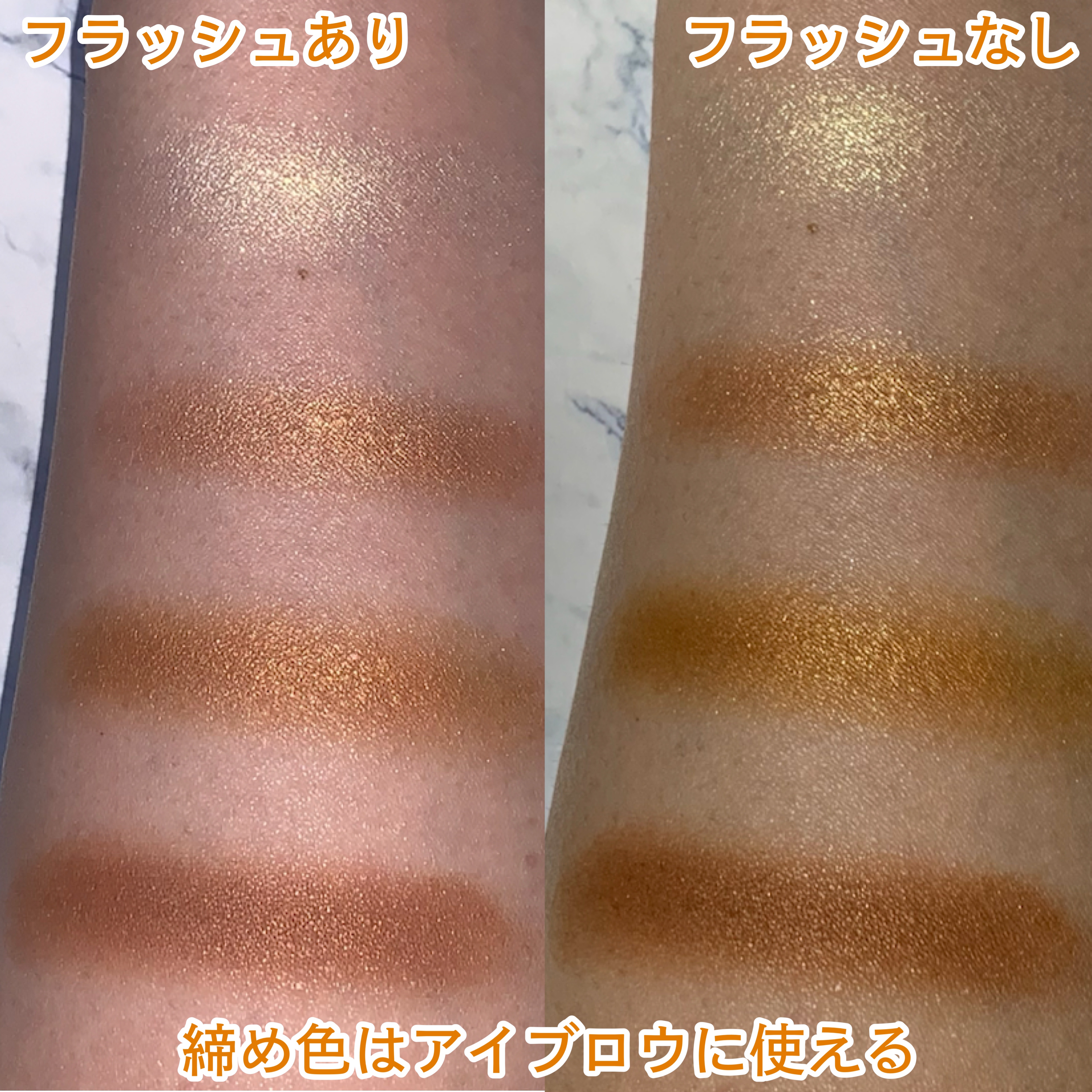 私の好きなカラー🥰 今日は薄く塗ってナチュラルにしましたが、濃くも発色してくれるので使い分けしやすい! イエベ秋🍂にめっちゃオススメのグリッターブラウン。 室内だとツヤっぽく見えるのに外やライトの光が当たるとキラキラに✨ 年齢的にグリッターとか似合わなくなってきたけど、このアイシャドウは使いやすくて好き♡