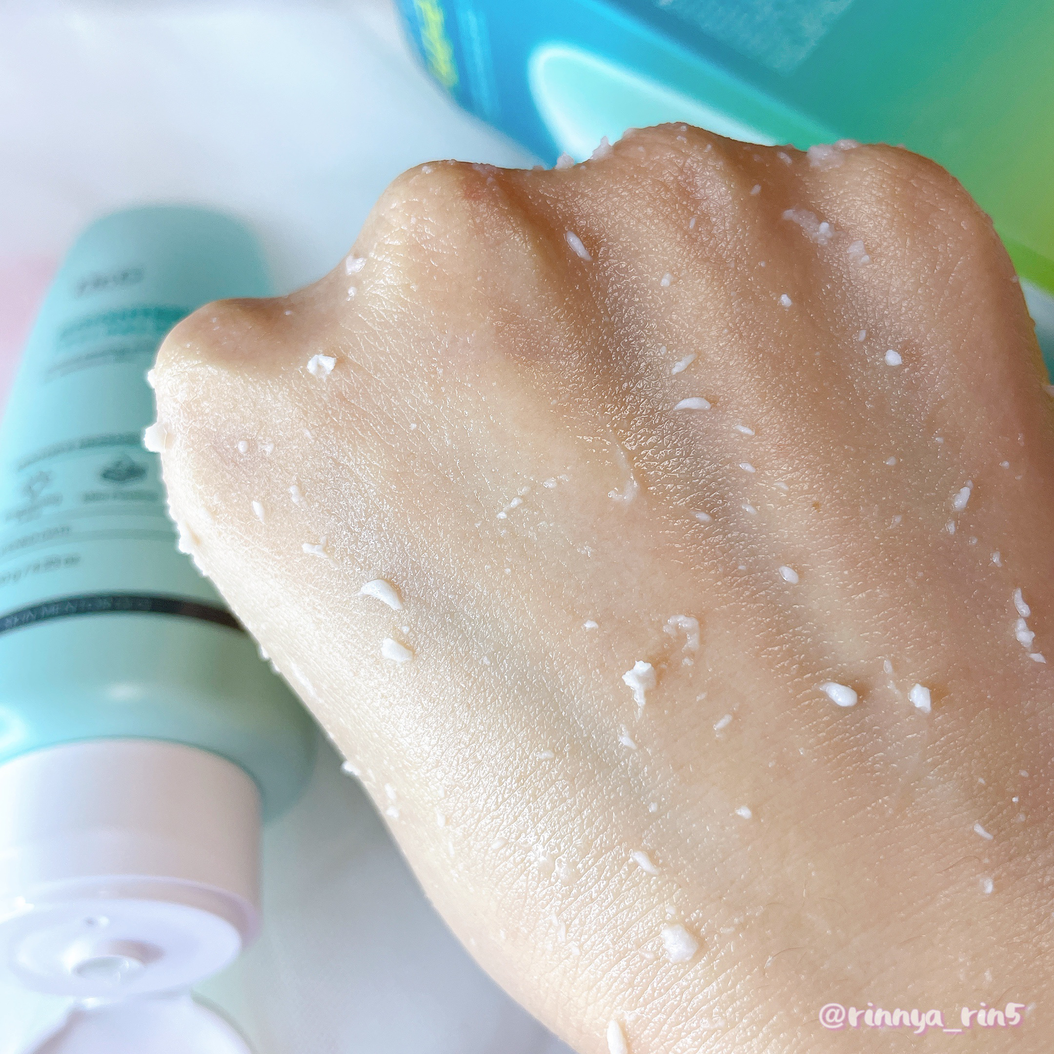 週に1・2回で濡れた手のまま使用できる 低刺激ピーリング 優しくクルクルするだけでポロポロとでてきます その後ぬるま湯で優しく洗い流すだけでお肌にツルツル 顔だけでなく首やデコルテなどにも使えて 一度でツルスベ肌に
