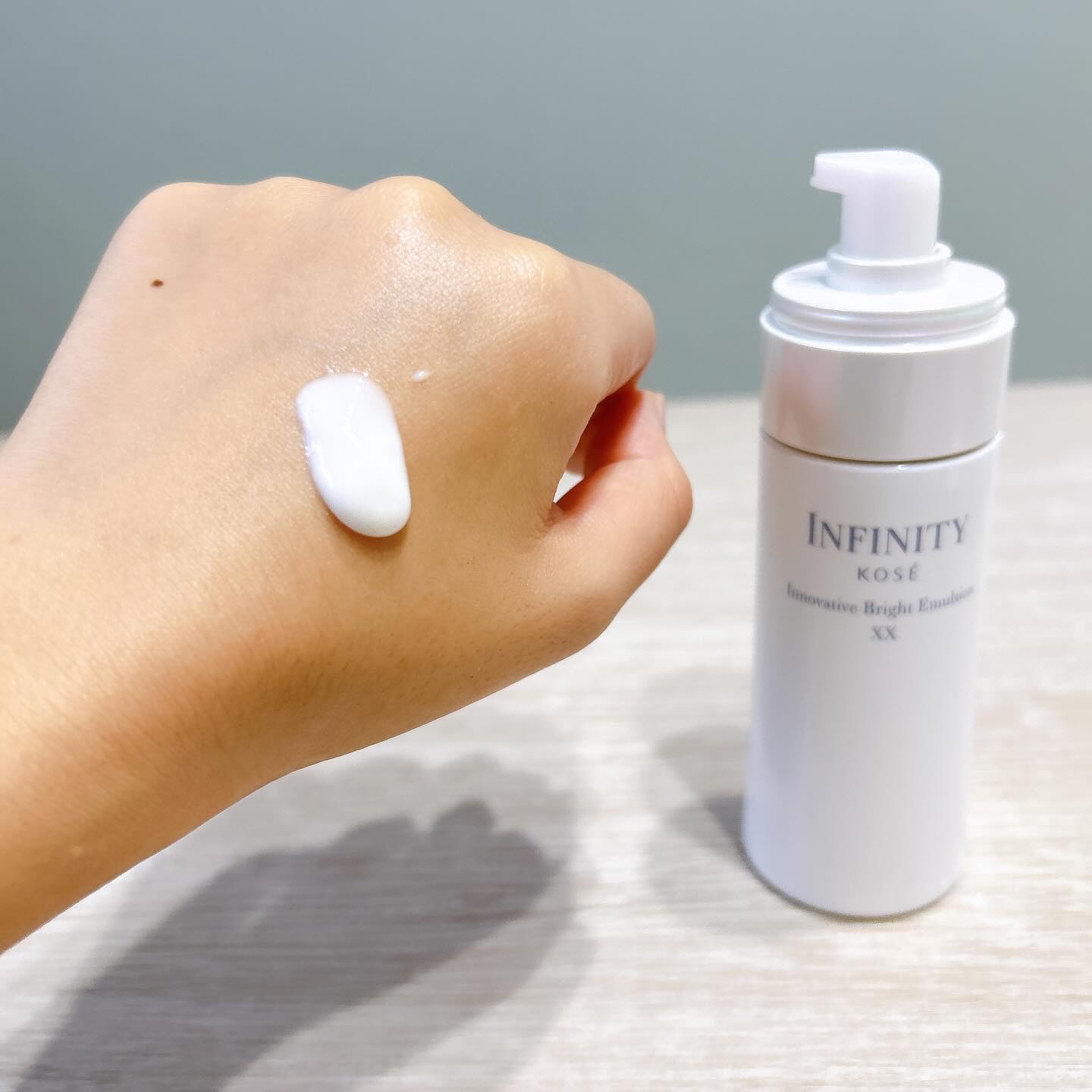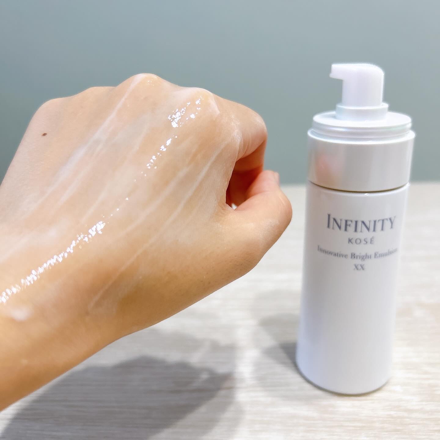コウジ酸配合で、美白ケア&エイジングケア!! #インフィニティ #イノベイティブブライト ローション XX 年齢を重ねるたびに難しくなる大人の美白に着目✨ シミの悩み点へのアプローチに加え顔全体の面でも光を回すような美白ケアを実現。 特にエマルジョンが気に入りました〜 濃密!! そんなエマルジョン。