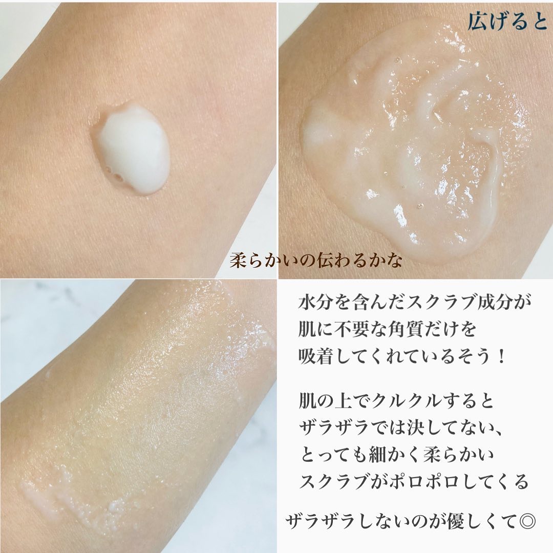 週に1・2回で濡れた手のまま使用できる 低刺激ピーリング 優しくクルクルするだけでポロポロとでてきます その後ぬるま湯で優しく洗い流すだけでお肌にツルツル 顔だけでなく首やデコルテなどにも使えて 一度でツルスベ肌に